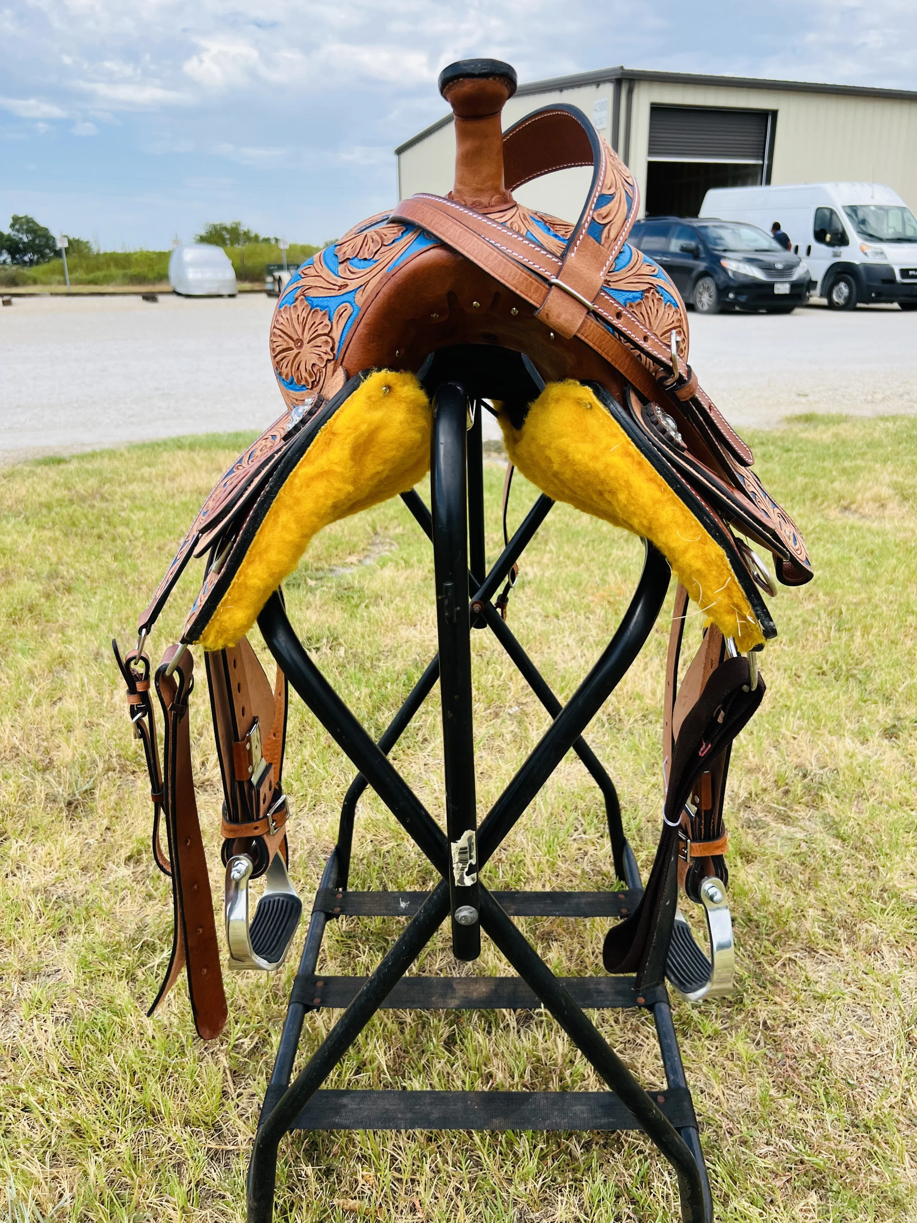 - SIZE AND MATERIAL: This adult saddle is available in 14", 15", 16", 17" & 18". This saddle is made up of 100% leather.