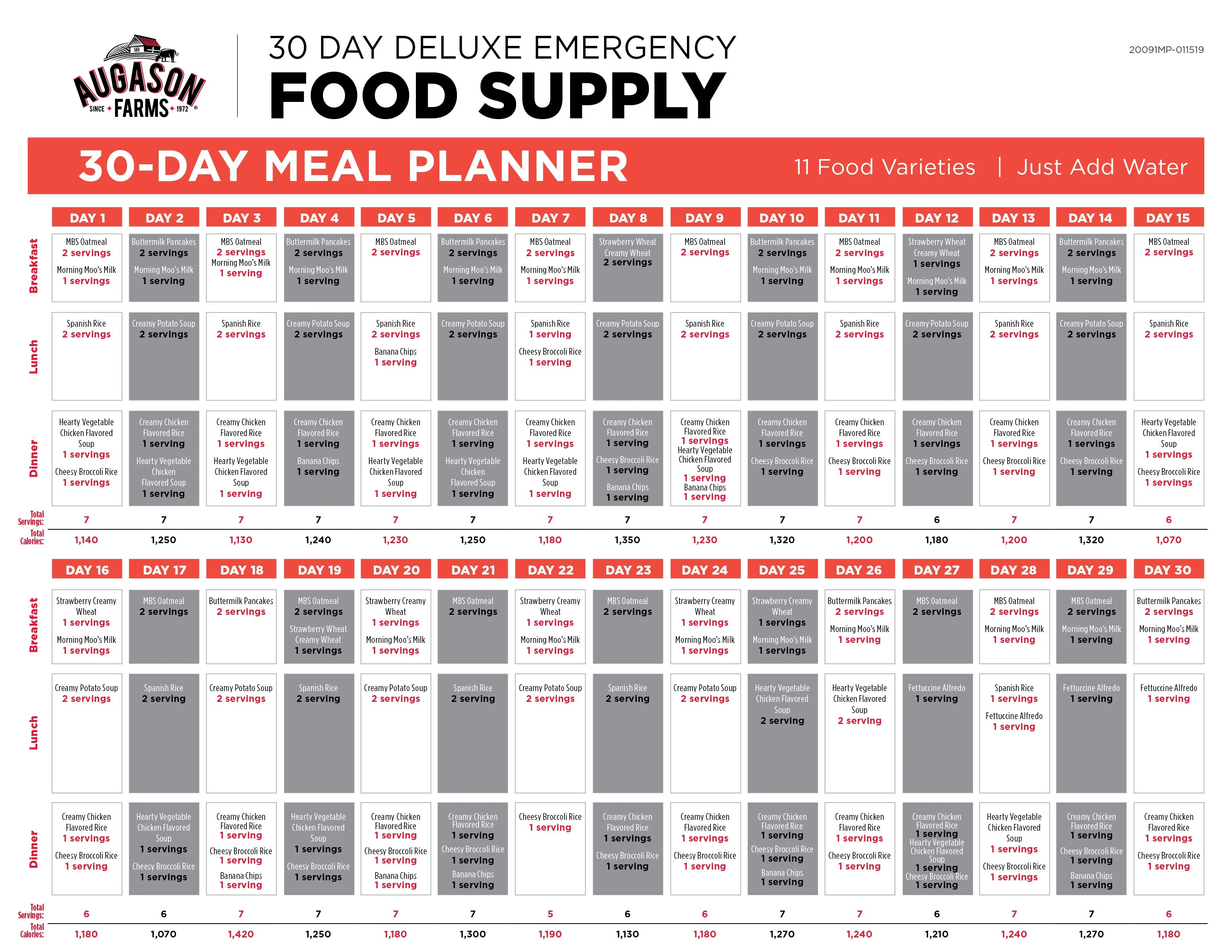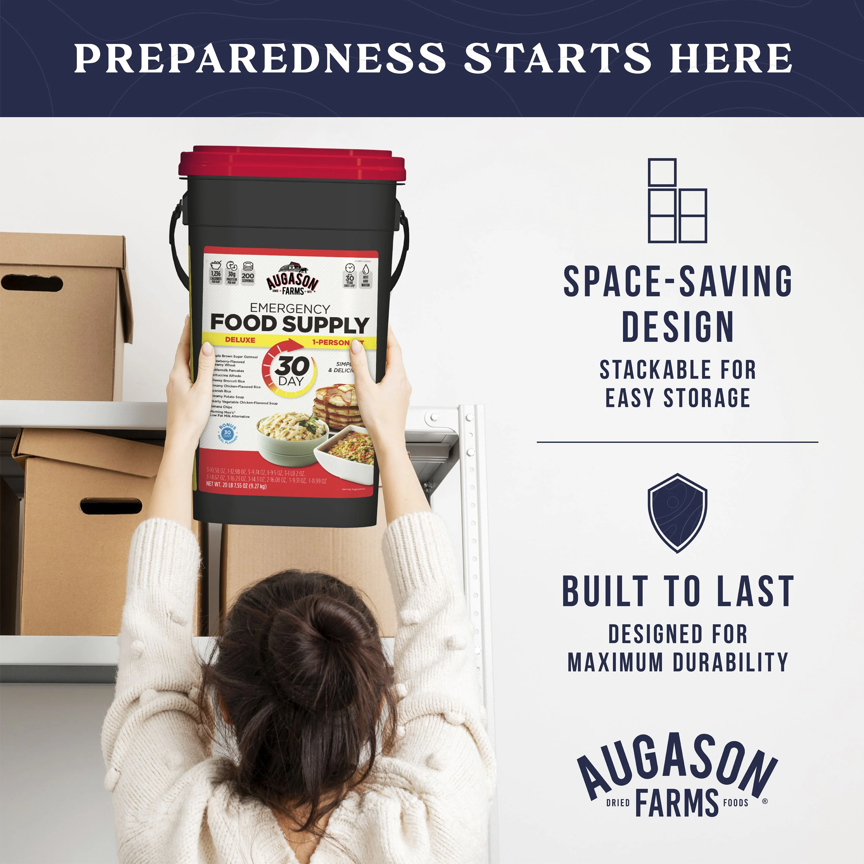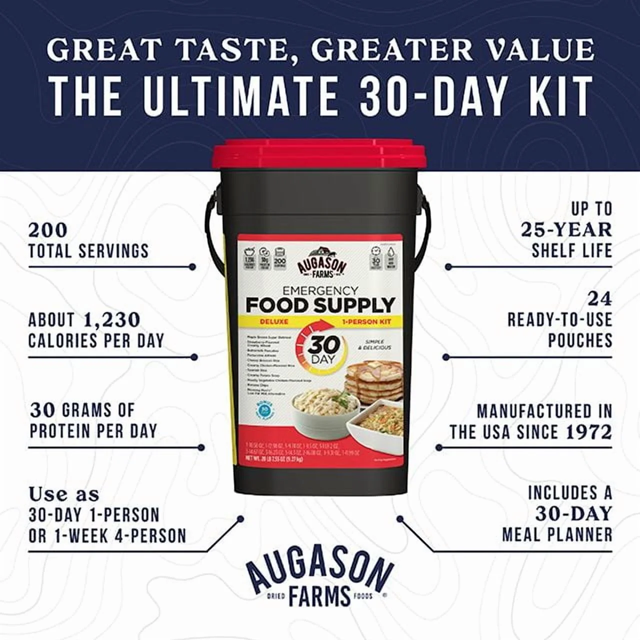 - 200 servings of food carefully selected to nourish one person for 30 days