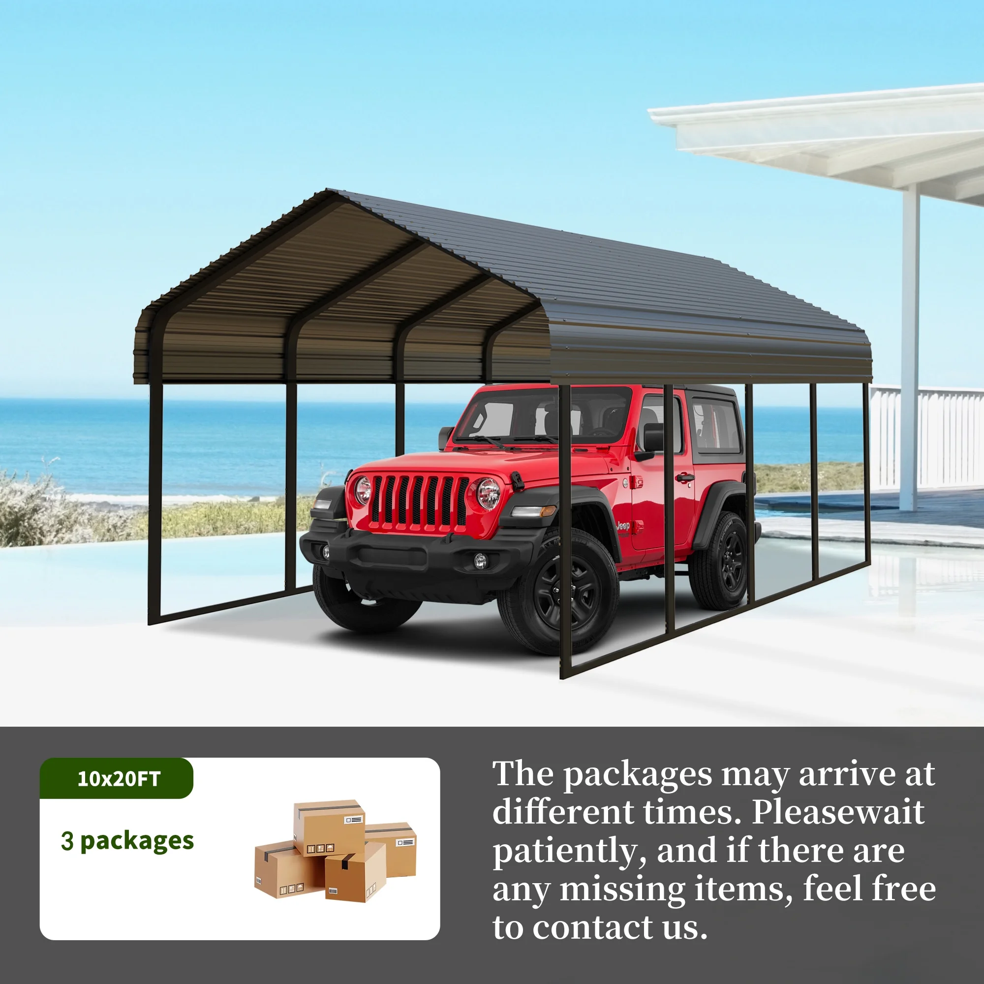 10x20 FT Heavy Duty Metal Carport - Galvanized Steel Frame & Roof, All - Weather Protection for Cars, Suvs, Trucks, Rvs, Boats | UV Resistant, Rust - Resistant, Portable Shelter