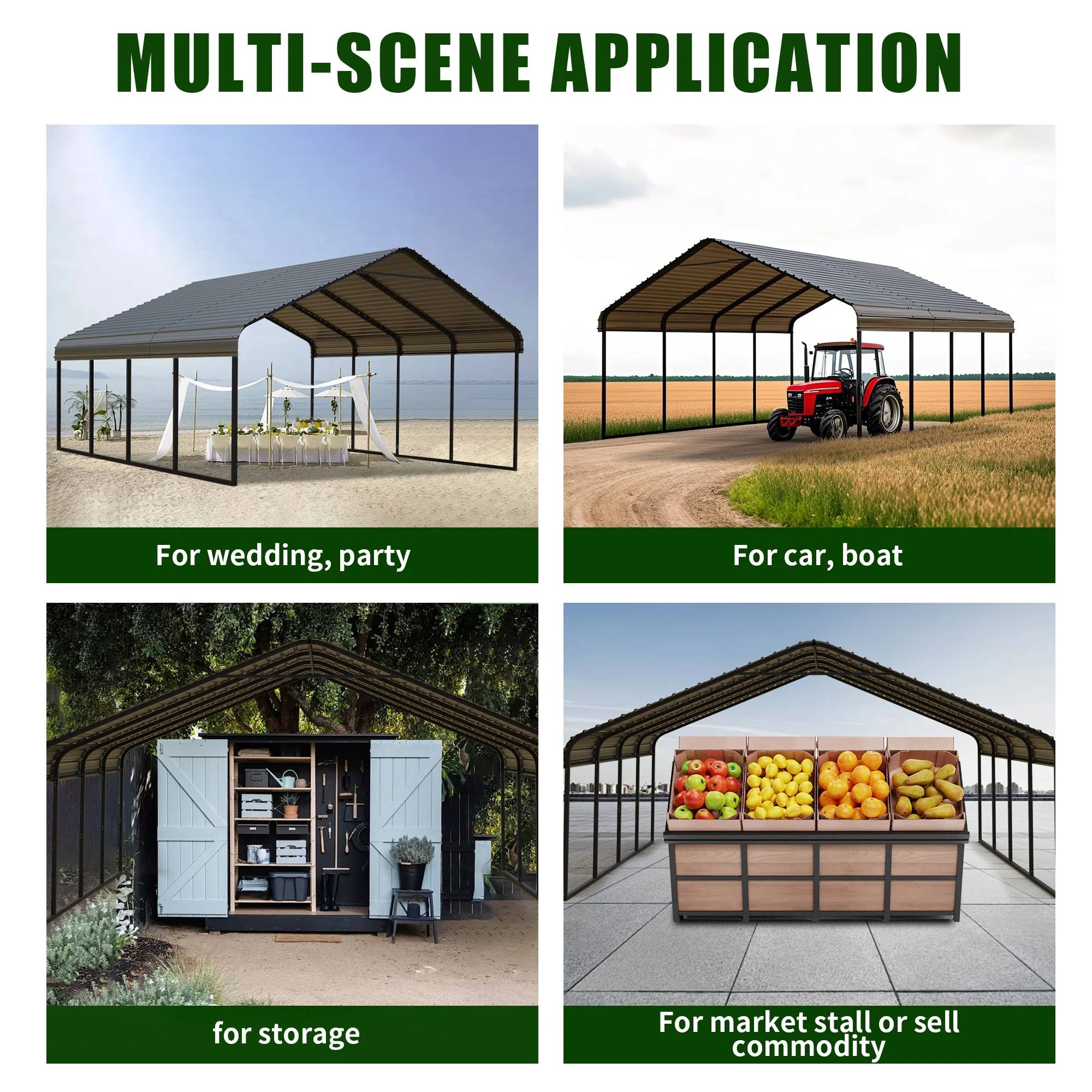 - MULTI-USE SHELTER SOLUTION:Protect cars, RVs, boats, ATVs, lawn tractors, patio furniture. All-in-one portable garage/vehicle shelter for home/outdoor use.