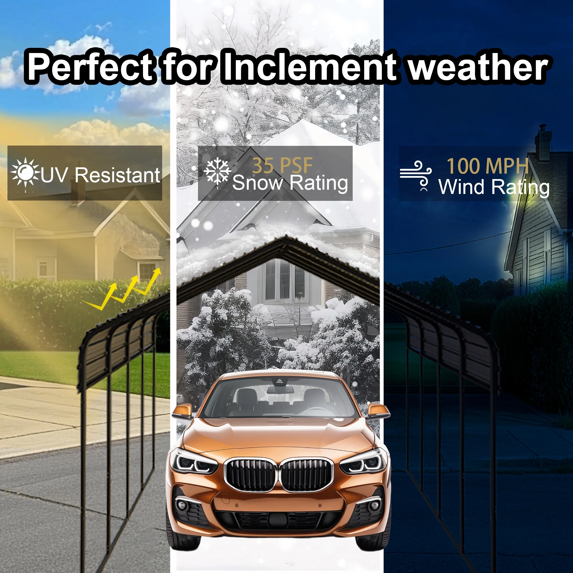 - 360° ALL-WEATHER PROTECTION:Waterproof sloped roof sheds rain/snow instantly. Industrial UV-resistant PE coating prevents vehicle sun damage/fading. Shields against harsh weather, debris, and corrosion.