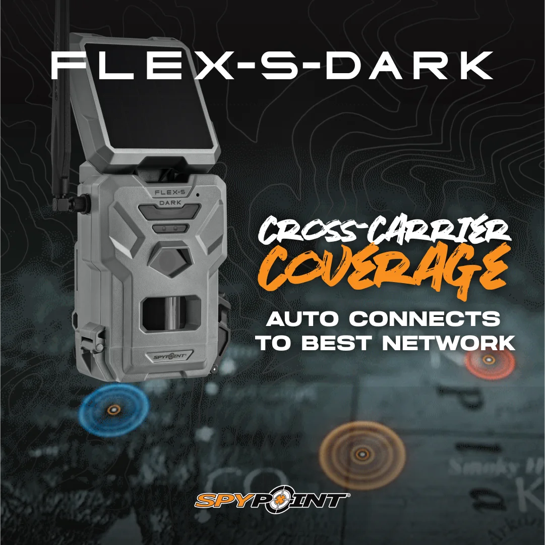 SPYPOINT Flex - S Dark Solar Outdoor Cellular Trail Camera - Integrated Solar Panel, No WiFi Needed, Night Vision Motion Activated, Dual - Sim LTE, 40MP Photos and 1080p W/Sound