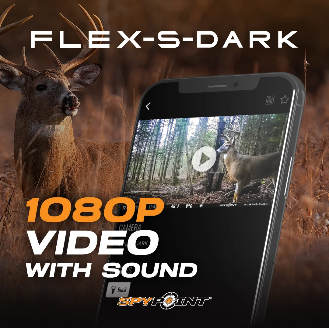 - HIGH-QUALITY PHOTOS AND VIDEOS: Capture detailed MP photos and 1080p videos with sound using the FLEX-S-DARK game camera. Equipped with four low-glow LEDs, it ensures clear night vision capabilities. With Instant Mode, request on-demand photos and videos directly through the SPYPOINT app, providing updates on your scouting spot before the next camera sync.
