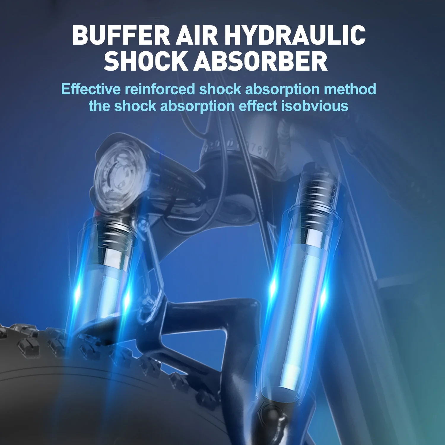 - 【𝐅𝐮𝐥𝐥 𝐒𝐮𝐬𝐩𝐞𝐧𝐬𝐢𝐨𝐧 & 𝐇𝐲𝐝𝐫𝐚𝐮𝐥𝐢𝐜 𝐃𝐮𝐚𝐥 𝐁𝐫𝐚𝐤𝐞𝐬】 The reinforced 100% front suspension fork enhances maneuverability on rough terrains, while a rear hydraulic shock absorber delivers superior performance. Hydraulic dual brakes significantly reduce stopping distance by 50%. With 26 x 4.0'' fat tires, you’ll experience increased stability, allowing you to ride confidently on any bumpy surface.