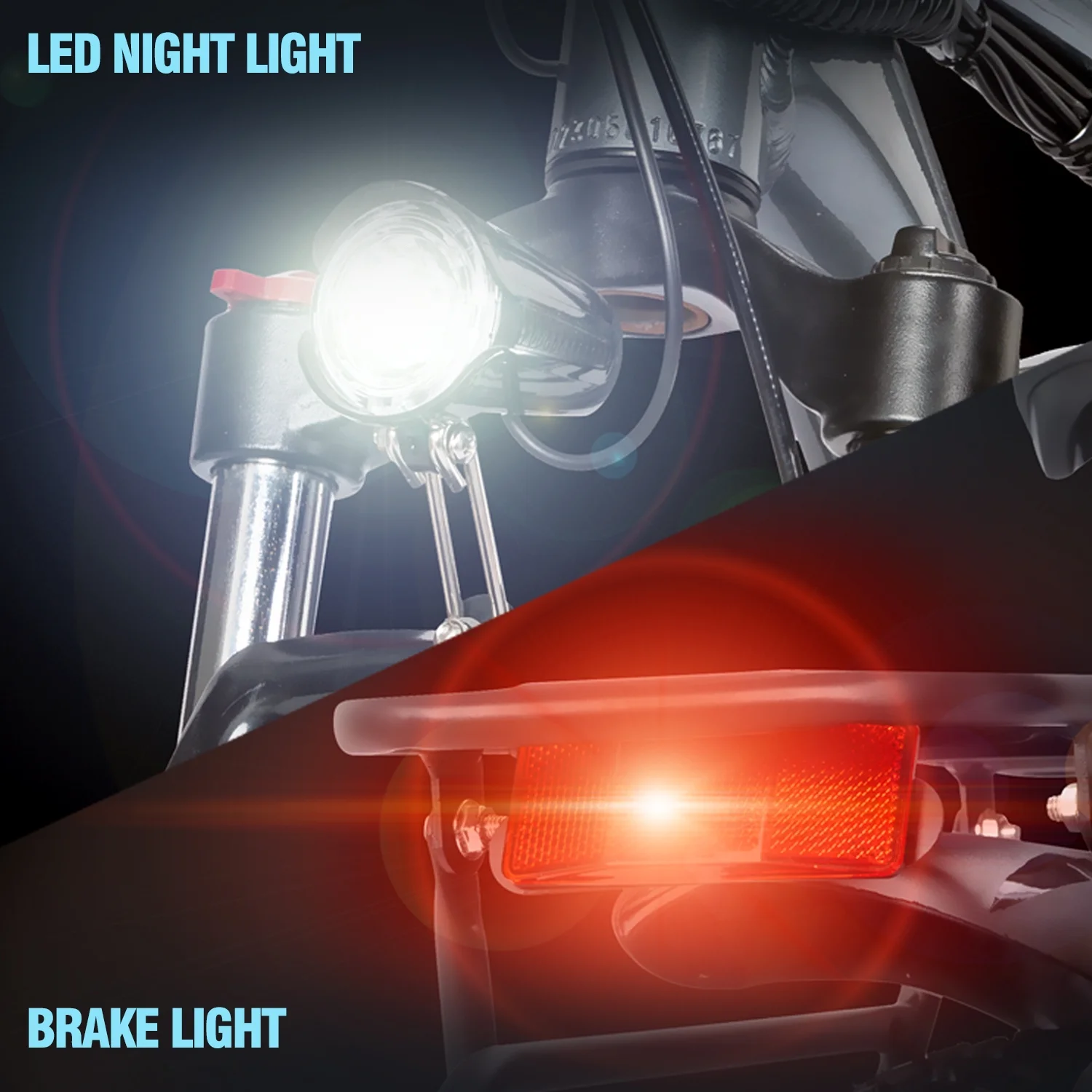 - 【𝐔𝐧𝐢𝐪𝐮𝐞 𝐃𝐞𝐬𝐢𝐠𝐧 & 𝐒𝐩𝐨𝐫𝐭𝐲 𝐕𝐢𝐬𝐢𝐨𝐧】The PEAK 3000W electric mountain bike boasts a striking and imaginative design, complemented by a stylish bike headlight for enhanced safety during nighttime rides. Its comfortable saddle, supported by a reinforced pole and hollowed-out bracket, ensures an exhilarating riding experience. Get ready to turn heads and be the envy of others as you embrace the latest trend in electric motorcycles!