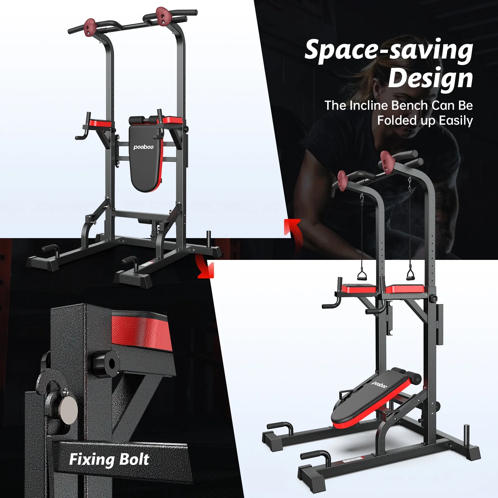Based on the market survey and analysis of currently fitness equipments and the customers' feedback, we have improved the original process technique of the power tower in manufacturer, and created this power tower suitable for home/office indoor use. It is easy to install, has a solid structure, requires little maintenance, and is cost-effective.