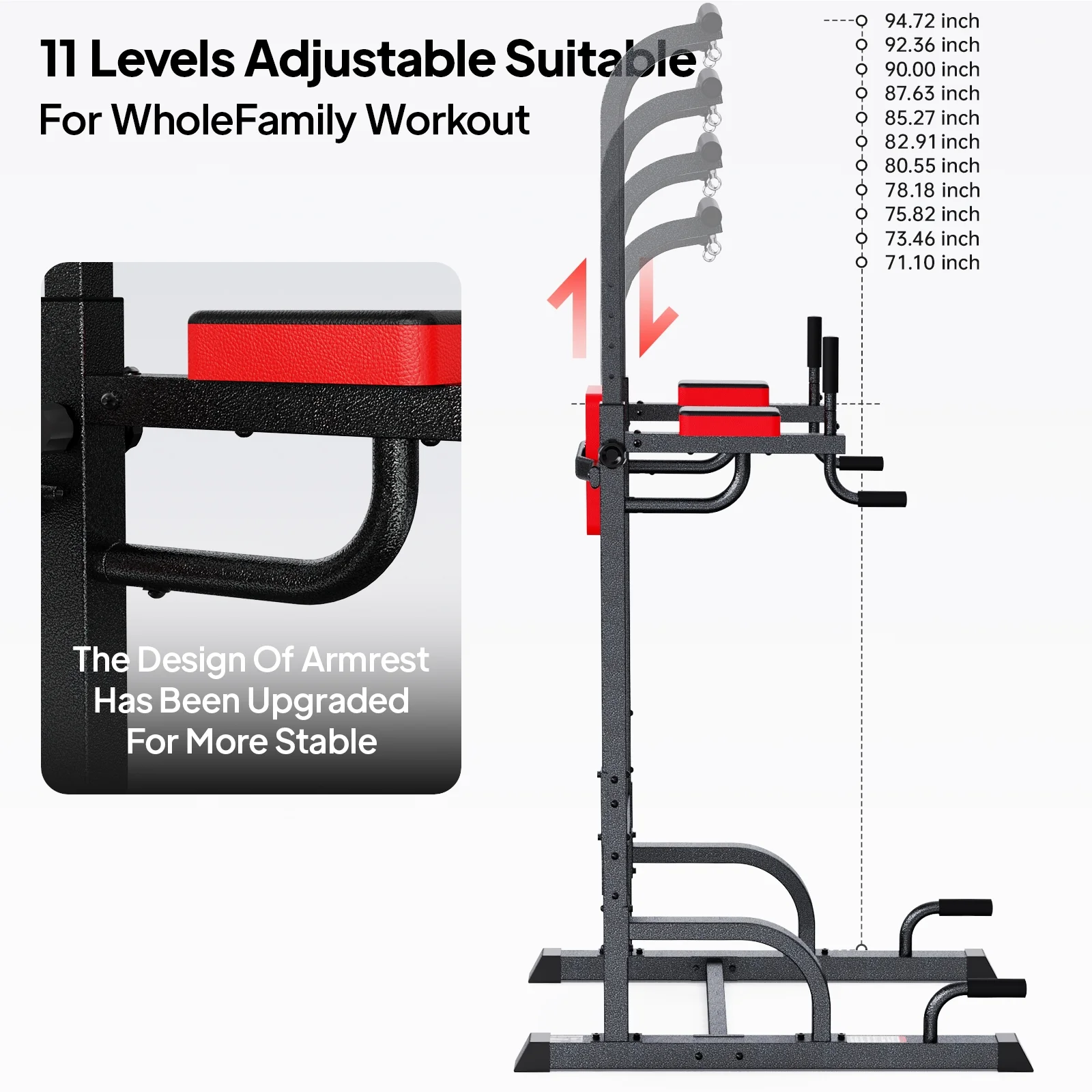 - 【11 Levels of Height Adjustment】The height adjustable range is 71.4-94''. It suitable for all teenagers, and adults' fitness needs at home, and in the office, perfect exercise equipment as a gift!