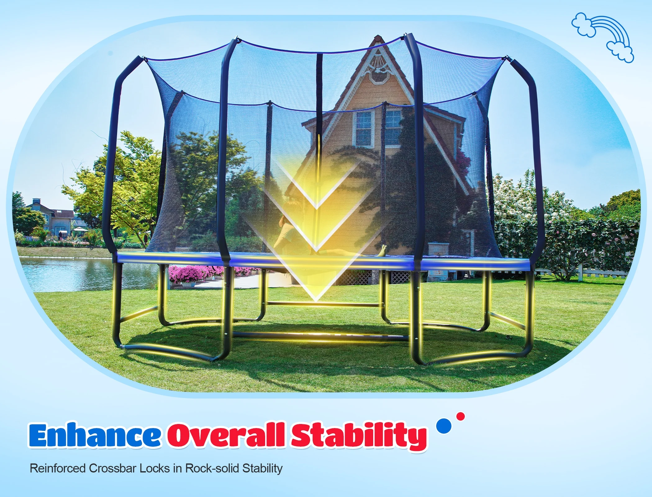 High-strength enclosure with double-stitched seams and rust-resistant springs prevent falls, meeting ASTM safety standards for worry-free family play. - Oval Aerodynamic Design