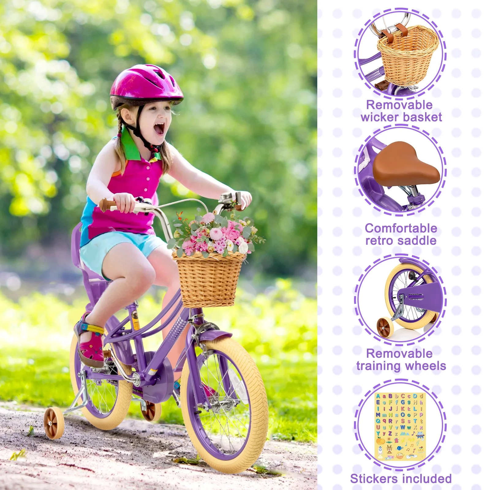 - 【LOVELY ATTACKS ALLOWED】 Retro exquisite soft handlebar grips, color-matched reflectors, mudguards, bells and your little compose the best painting roll of riding. The extremely lovely wicker basket allows your little to take toys or snacks. Meanwhile, DIY lovely stickers inspire his/her cells of aesthetics