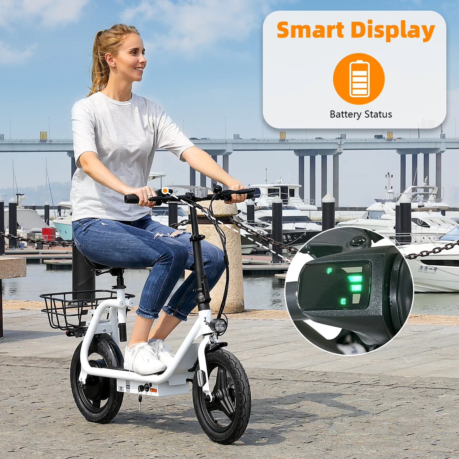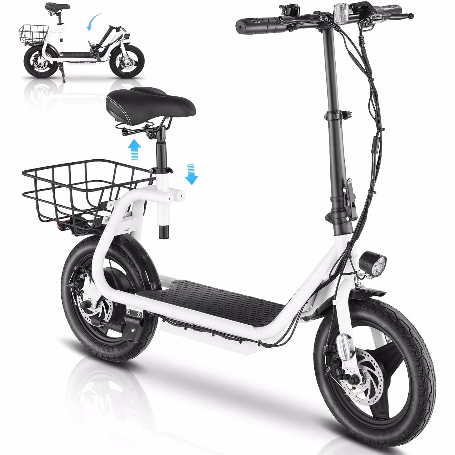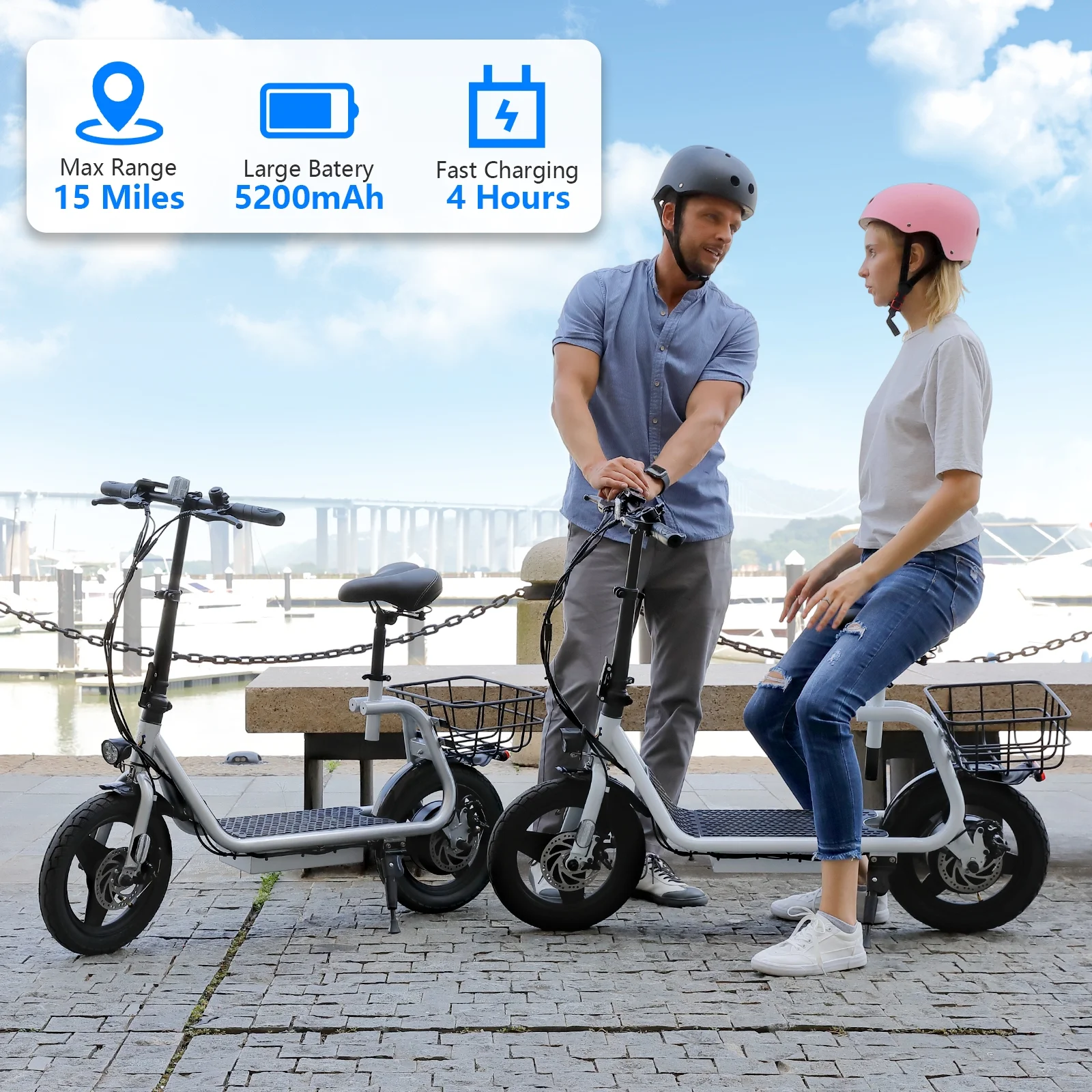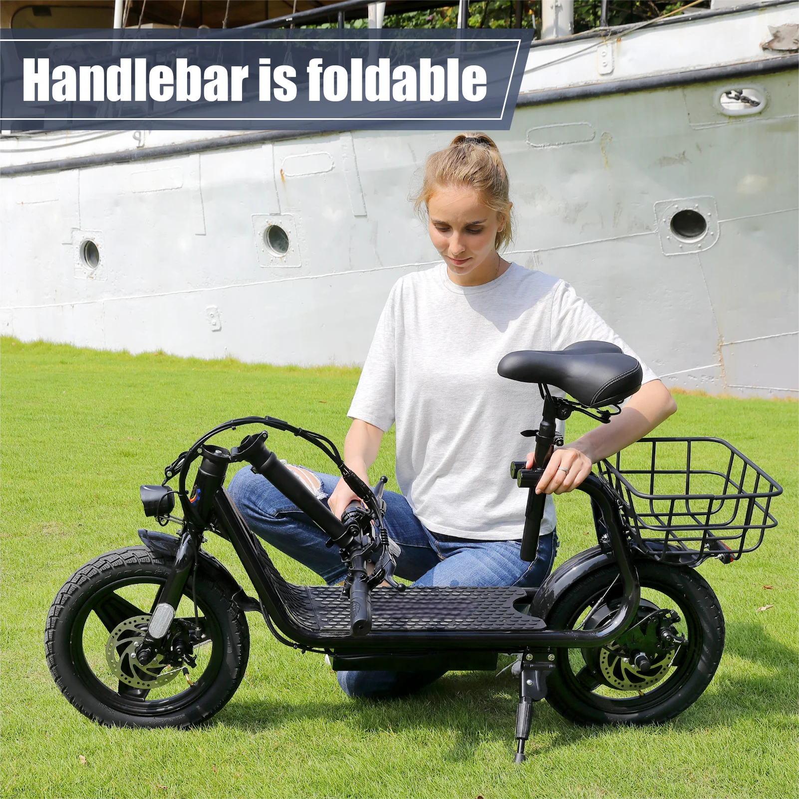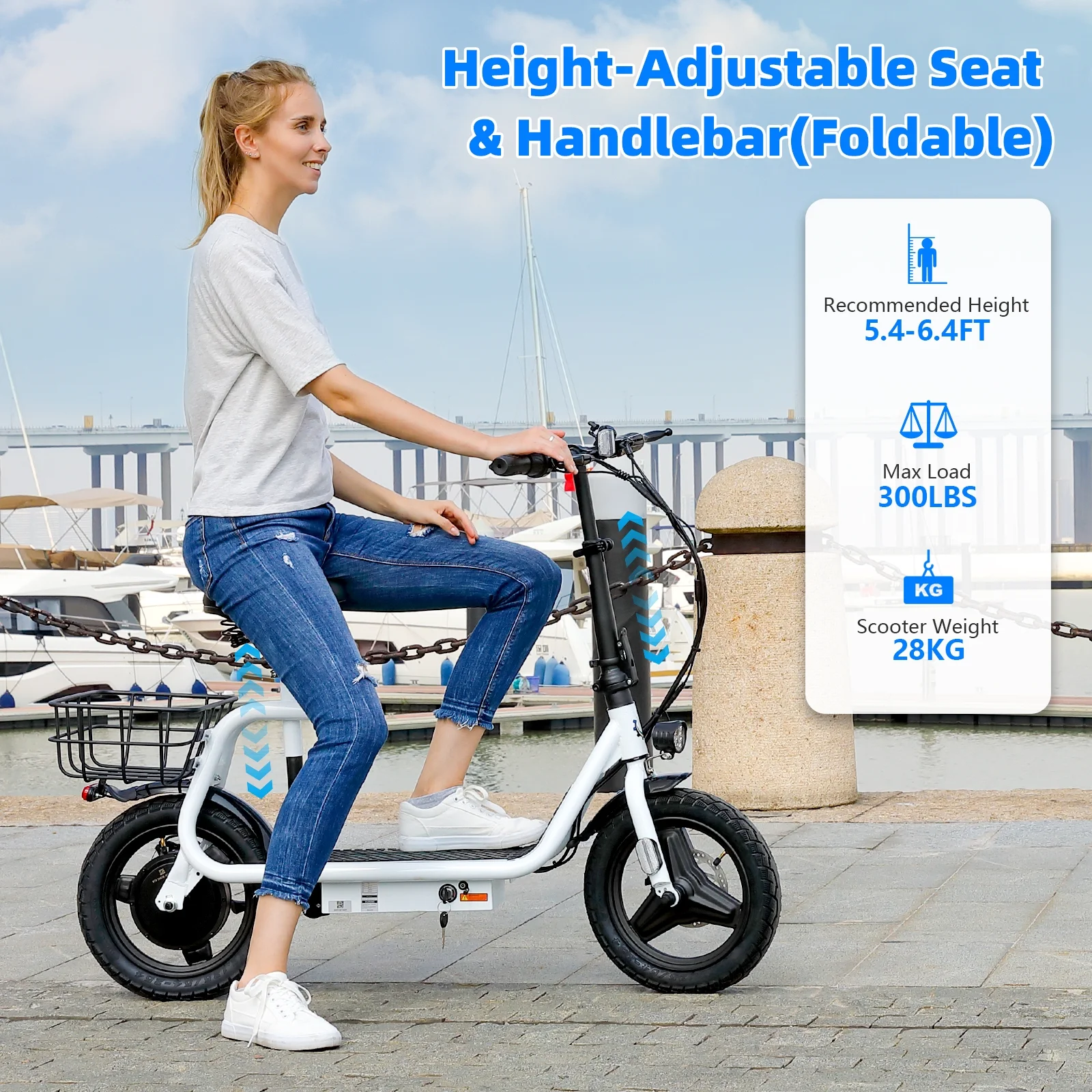 ⭐Foldable & Easy to Carry: SANOPY Electric scooter with seat for adults has a folding design. The compact folded size makes it easy to store in car trunks and other tight spaces, detachable scooter seat is included.