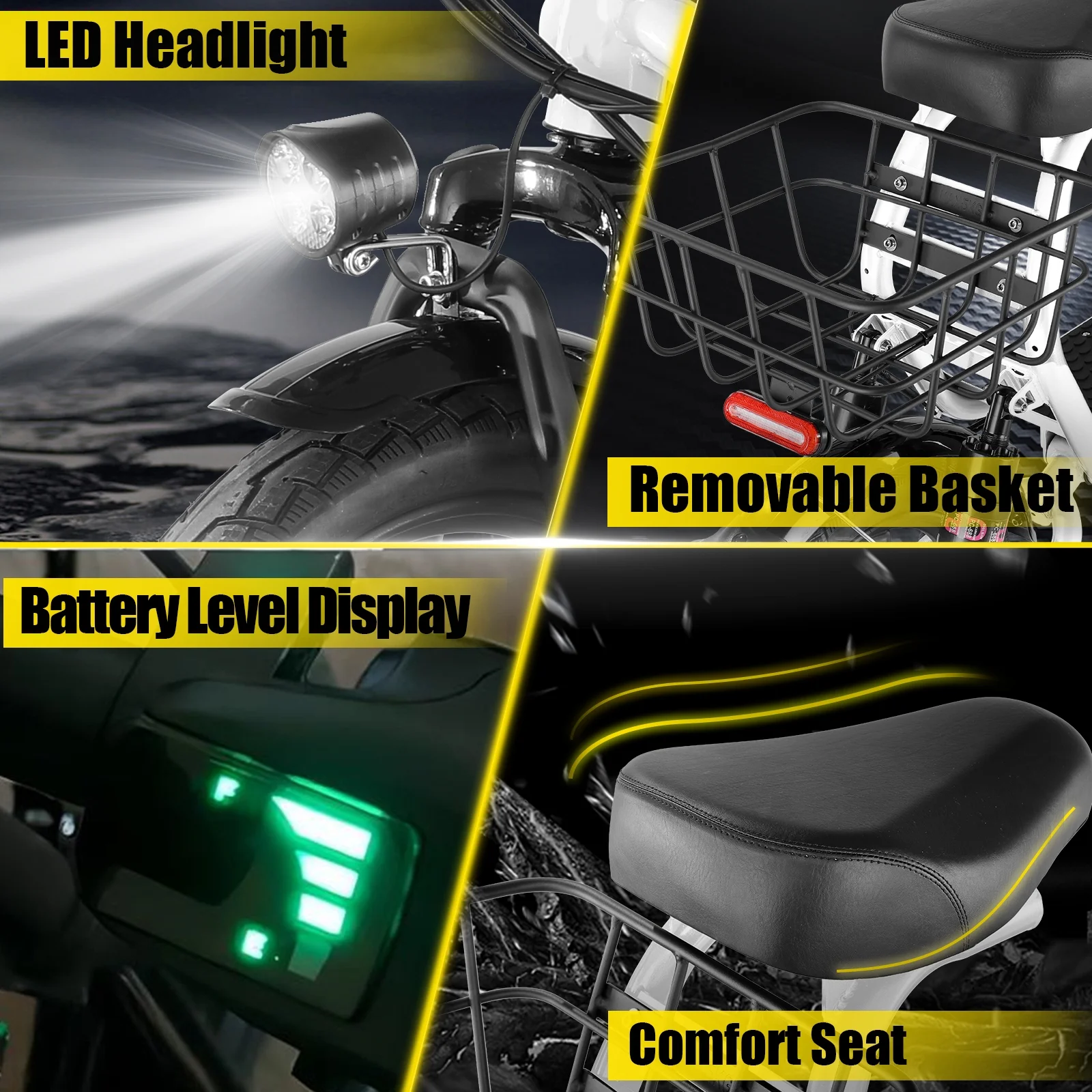 ⭐Design for Commuters: SANOPY Eletric scooter for adults comes with a basket above the rear wheel, perfect for shopping trips and short errands around the block. Built-in spot headlight makes the road visible and safe to ride at night.