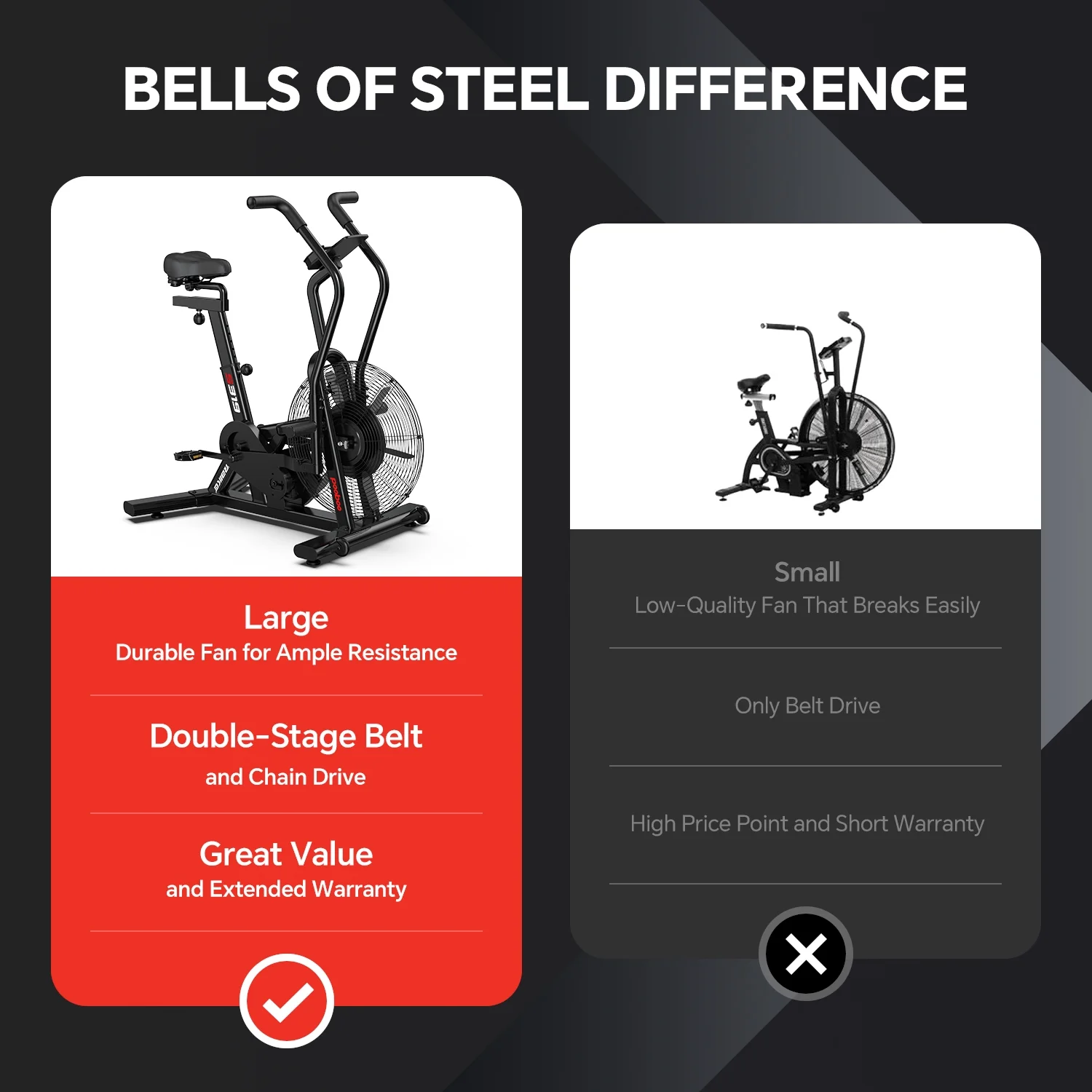 - Dual-Action Full-Body Workout & Patented Dual-Drive SystemMaximize calorie burn with simultaneous arm and leg resistance training powered by our patented dual-drive system – engineered for 30% heavier air resistance than standard fan bikes. The industrial-grade steel flywheel delivers gym-level intensity while maintaining whisper-quiet operation.