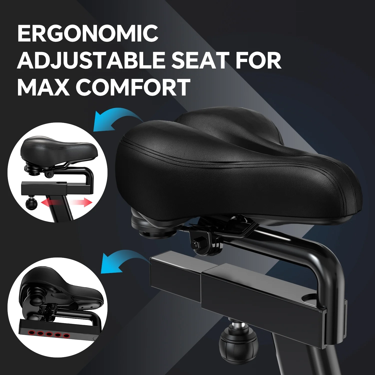 - Pro-Grade Adjustability & Extended Comfort Commercial-grade saddle (5-position depth + 7-height adjustments) accommodates users 5' to 6'7". Reinforced steel frame supports 350 lbs with zero wobble. Reinforced steel framing and premium cushioning eliminate discomfort during marathon sessions. Airflow keeps you cool even at peak intensity.