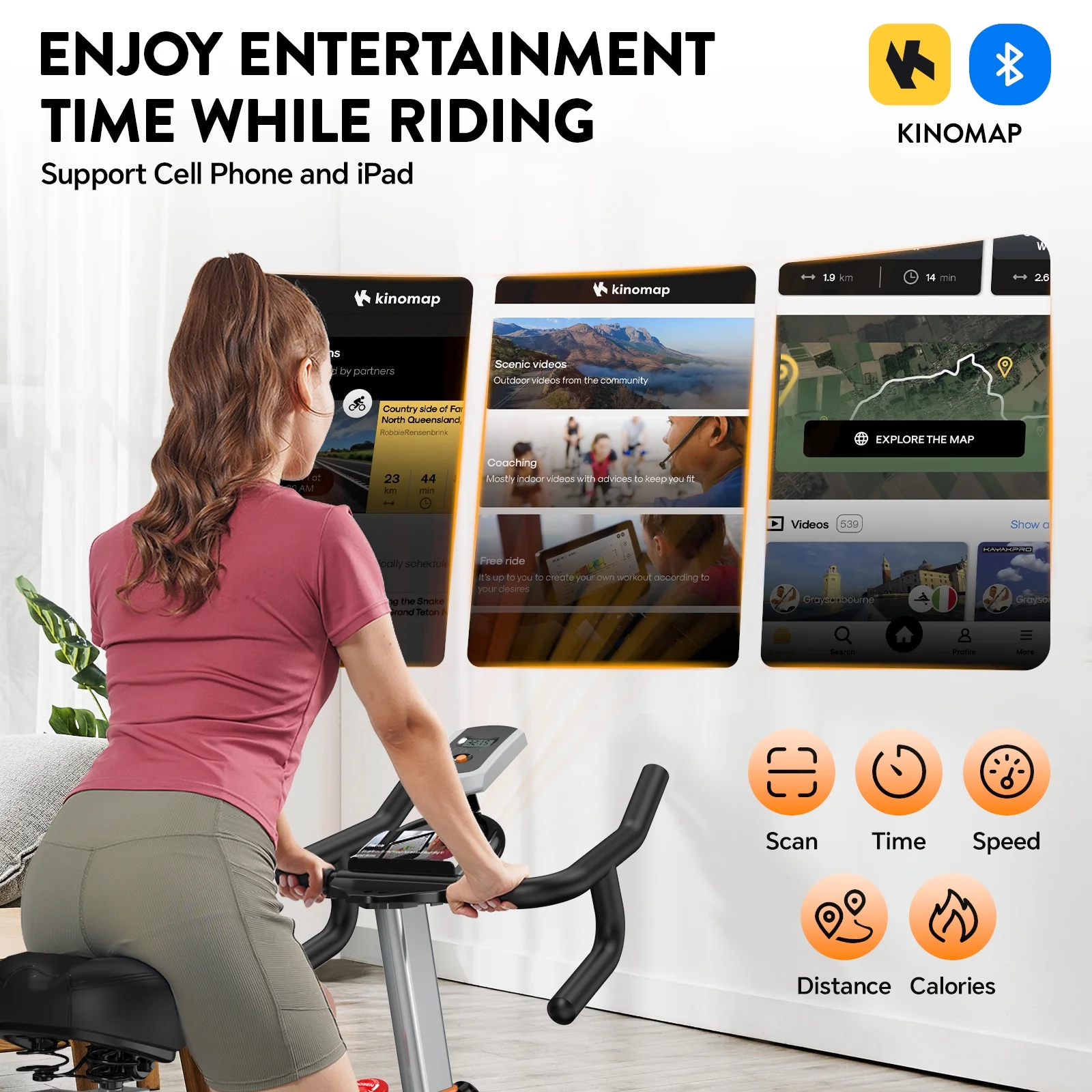 The LNOW Air Indoor Exercise Bike stands out with its patented dual-drive system, offering enhanced magnetic resistance for smoother, quieter operation and a more challenging workout. Maximize full-body engagement with the arm handlebar exercise + leg crank system, which simultaneously strengthens your upper and lower body. Stay motivated by connecting to popular fitness apps like Zwift and Kinomap via Bluetooth, turning your workout into an interactive, data-driven experience.