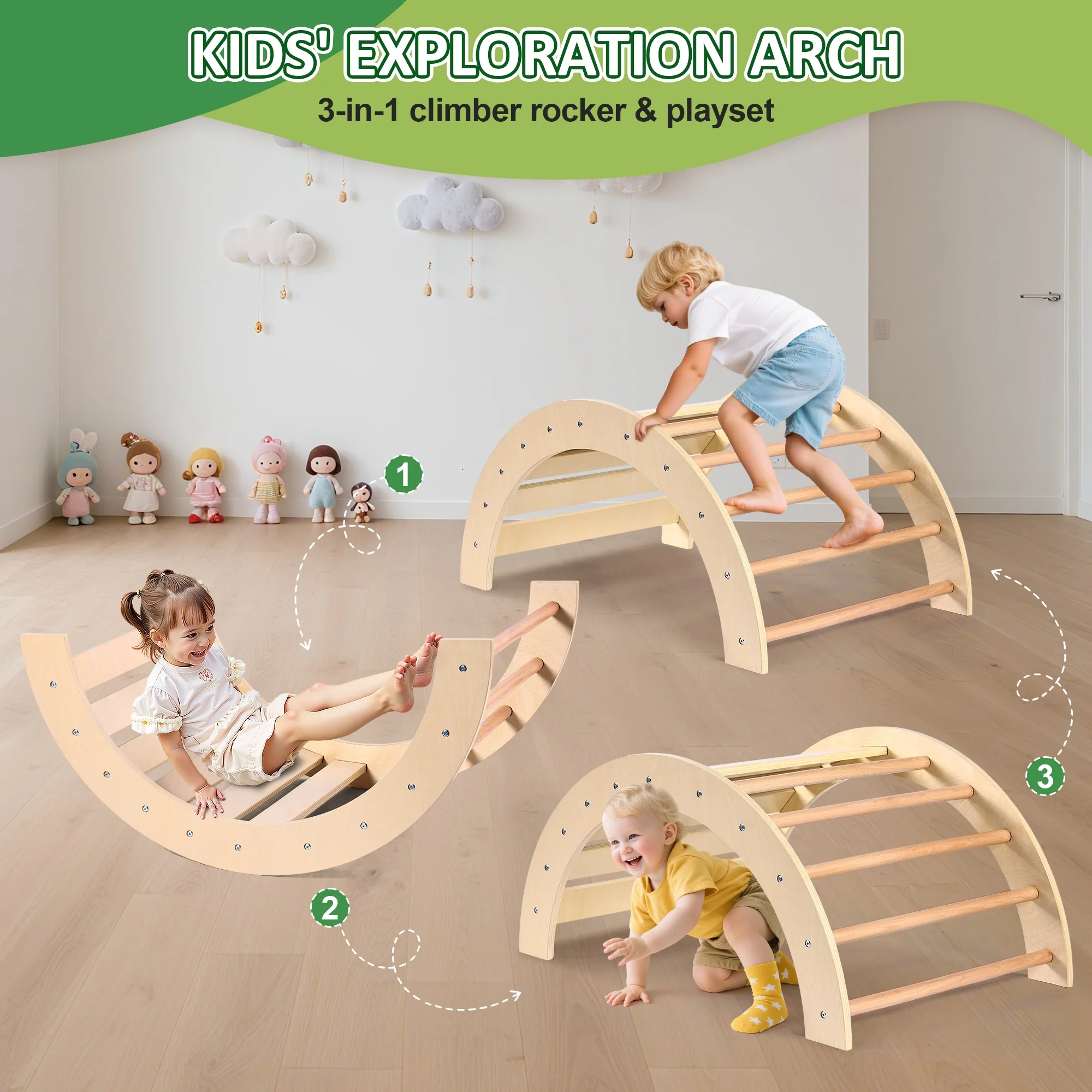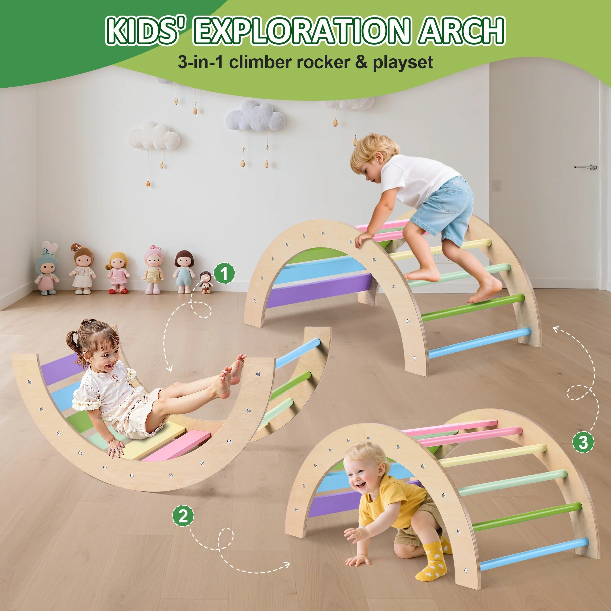 8-in-1 Multi-Functional Design: Includes a triangle climber, reversible slide/climbing ramp, arch, rocker, tent cover, and soft mat. Offers 8 play options to support climbing, sliding, rocking, and more.