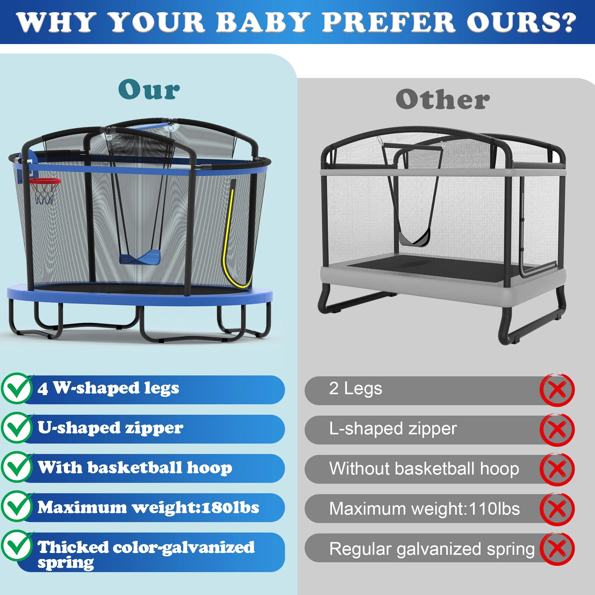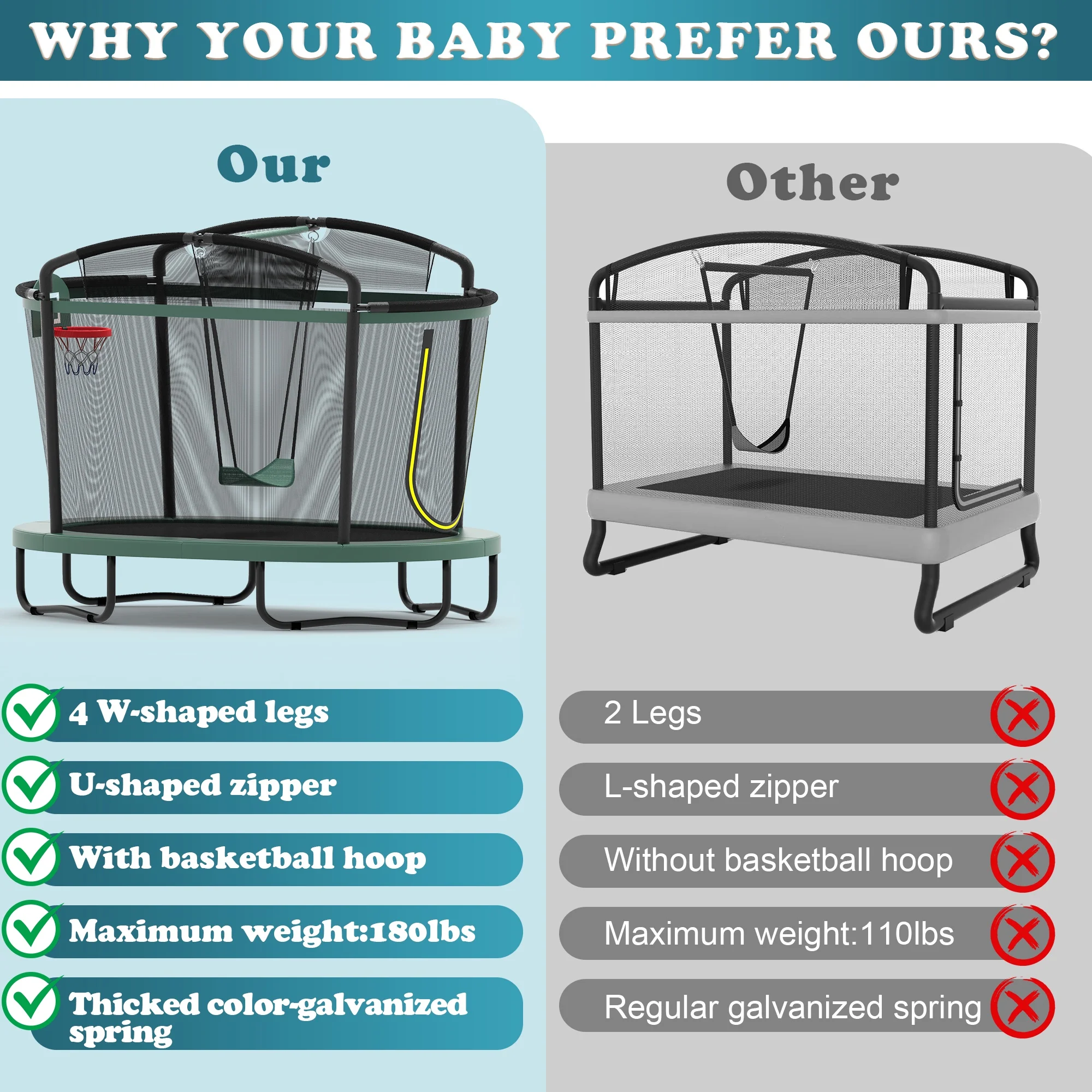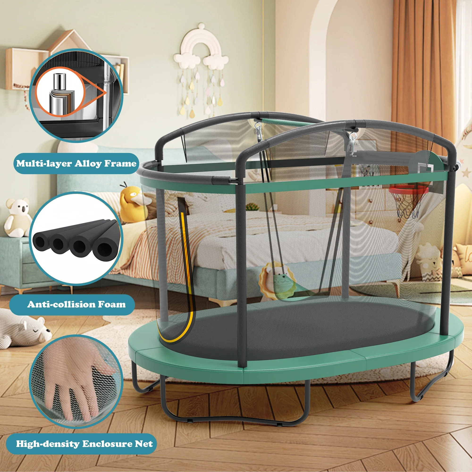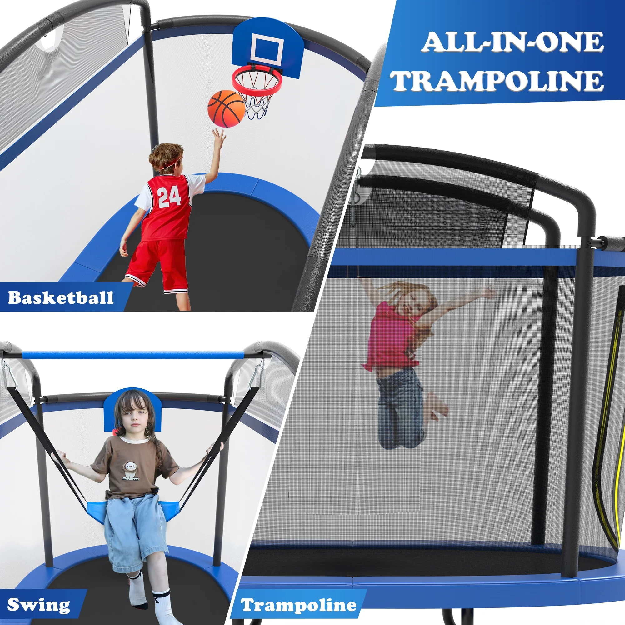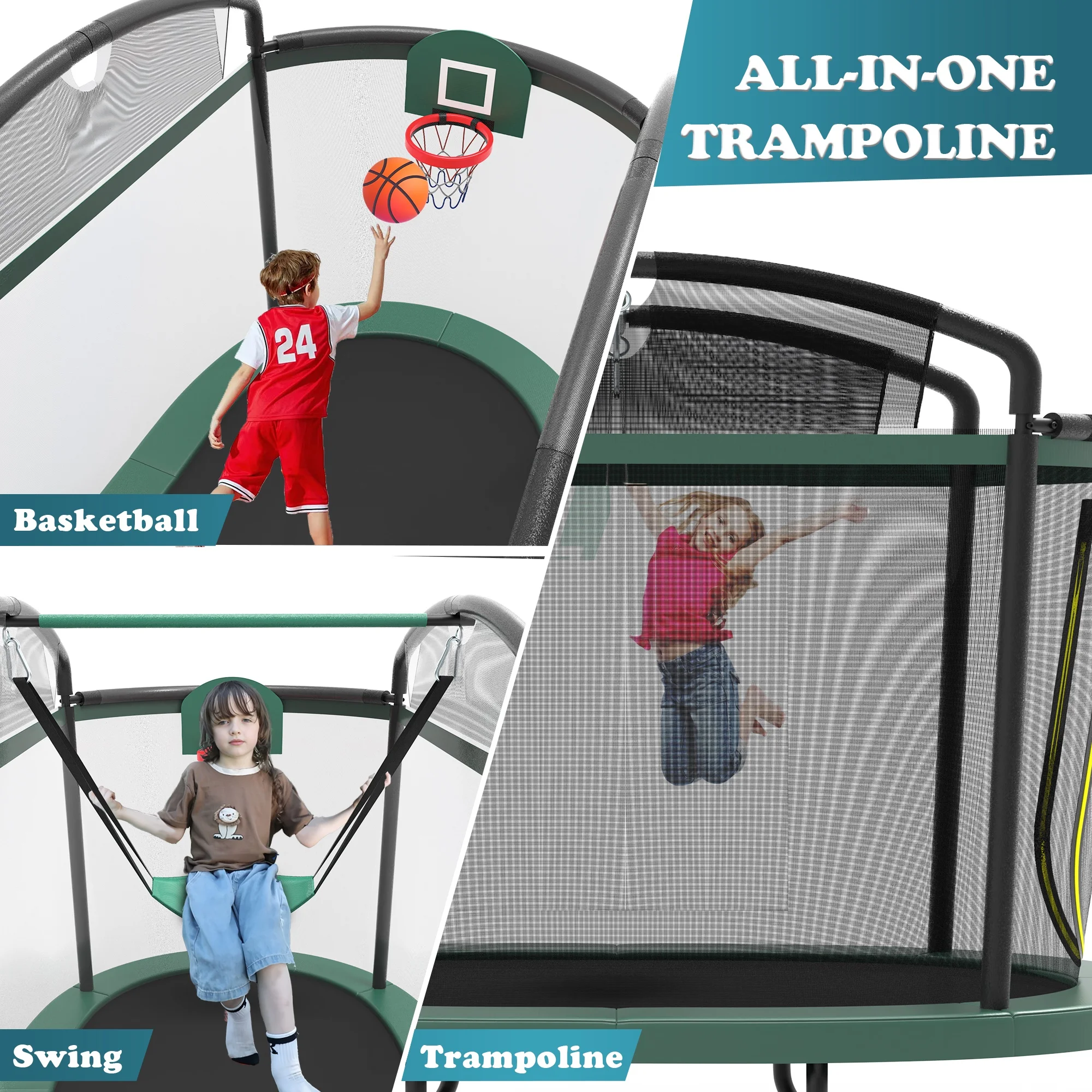 ✅ Triple Fun, Long-Lasting Appeal: Unlike traditional trampolines, this 3-in-1 design lets kids jump high to dunk or swing freely, keeping them entertained for hours.