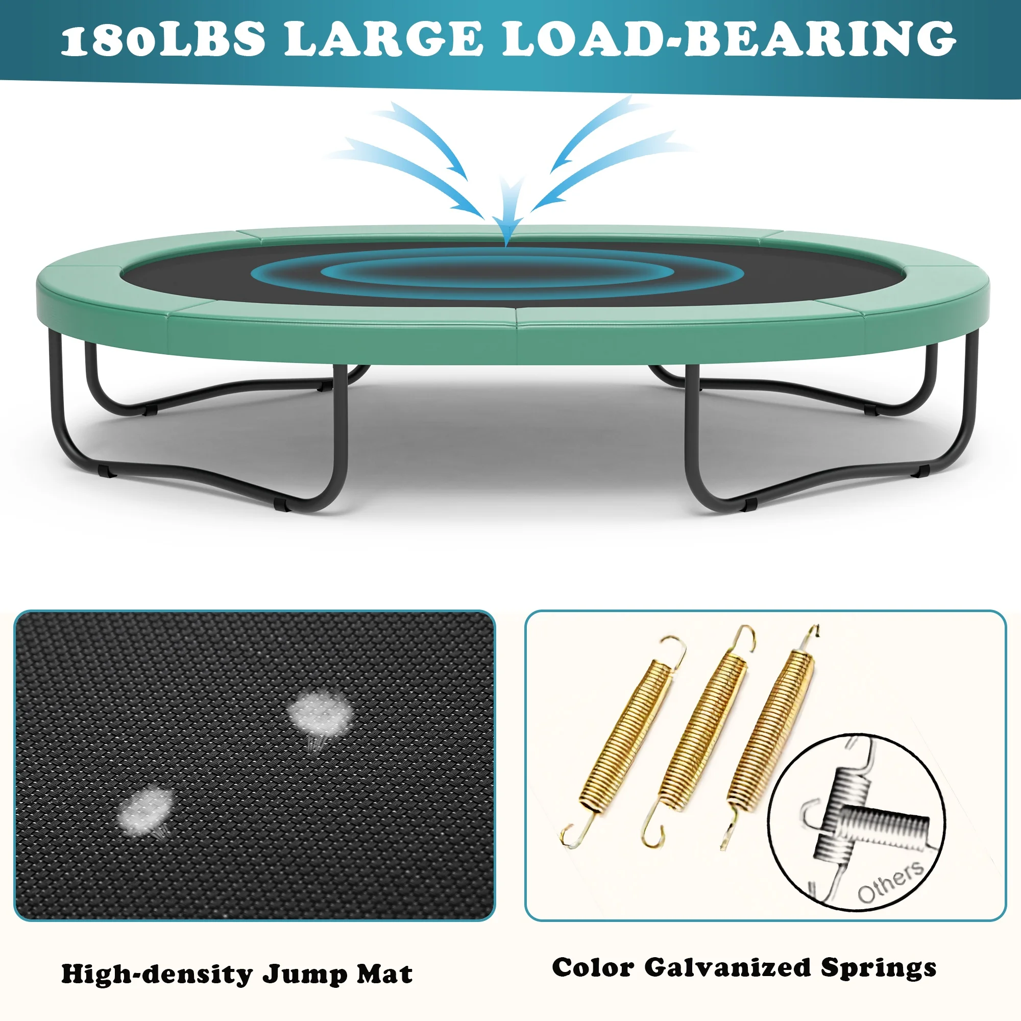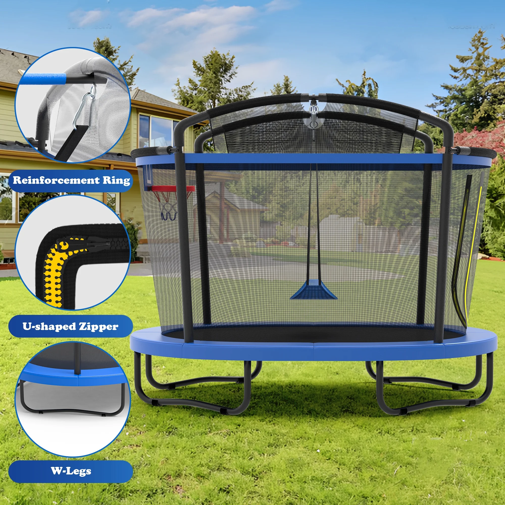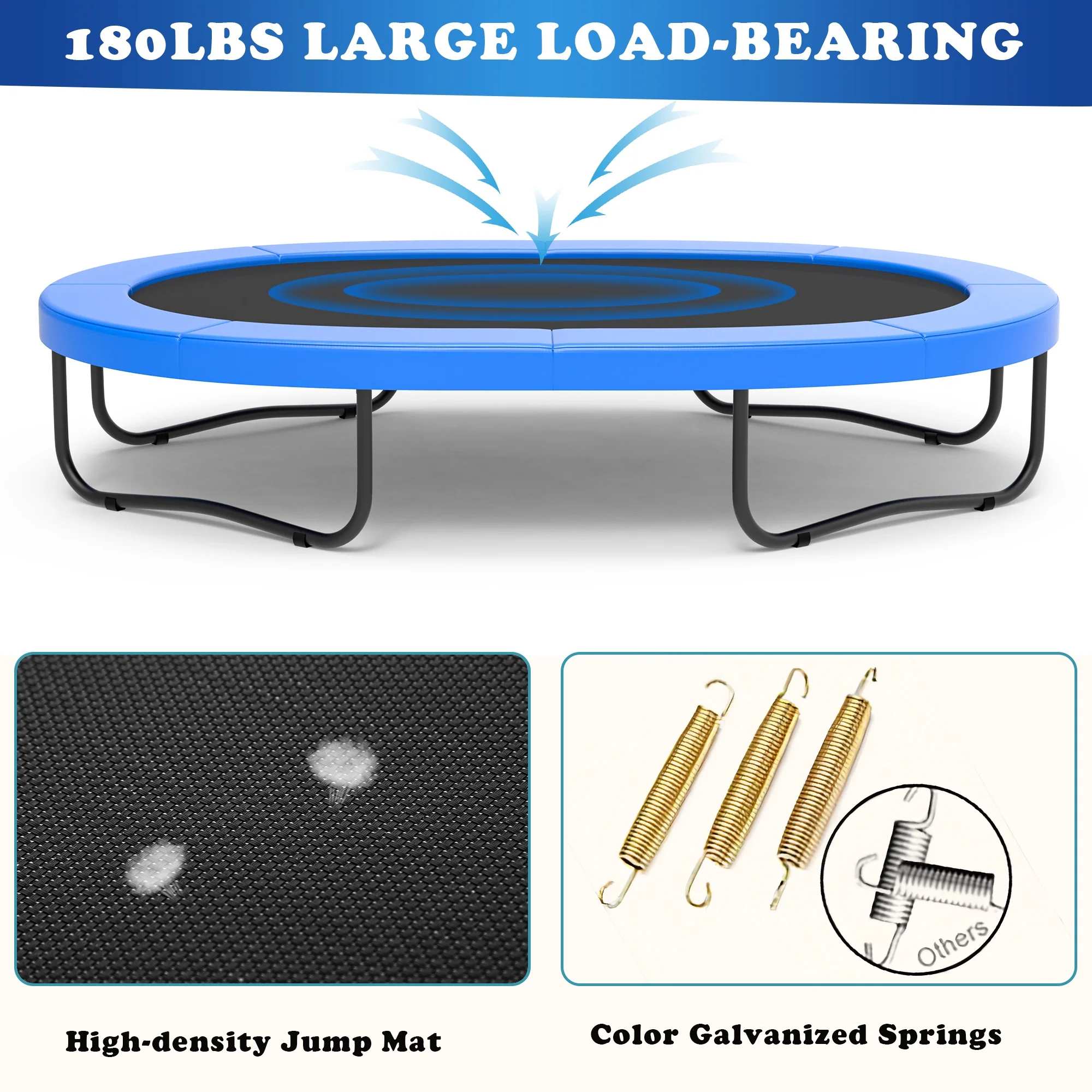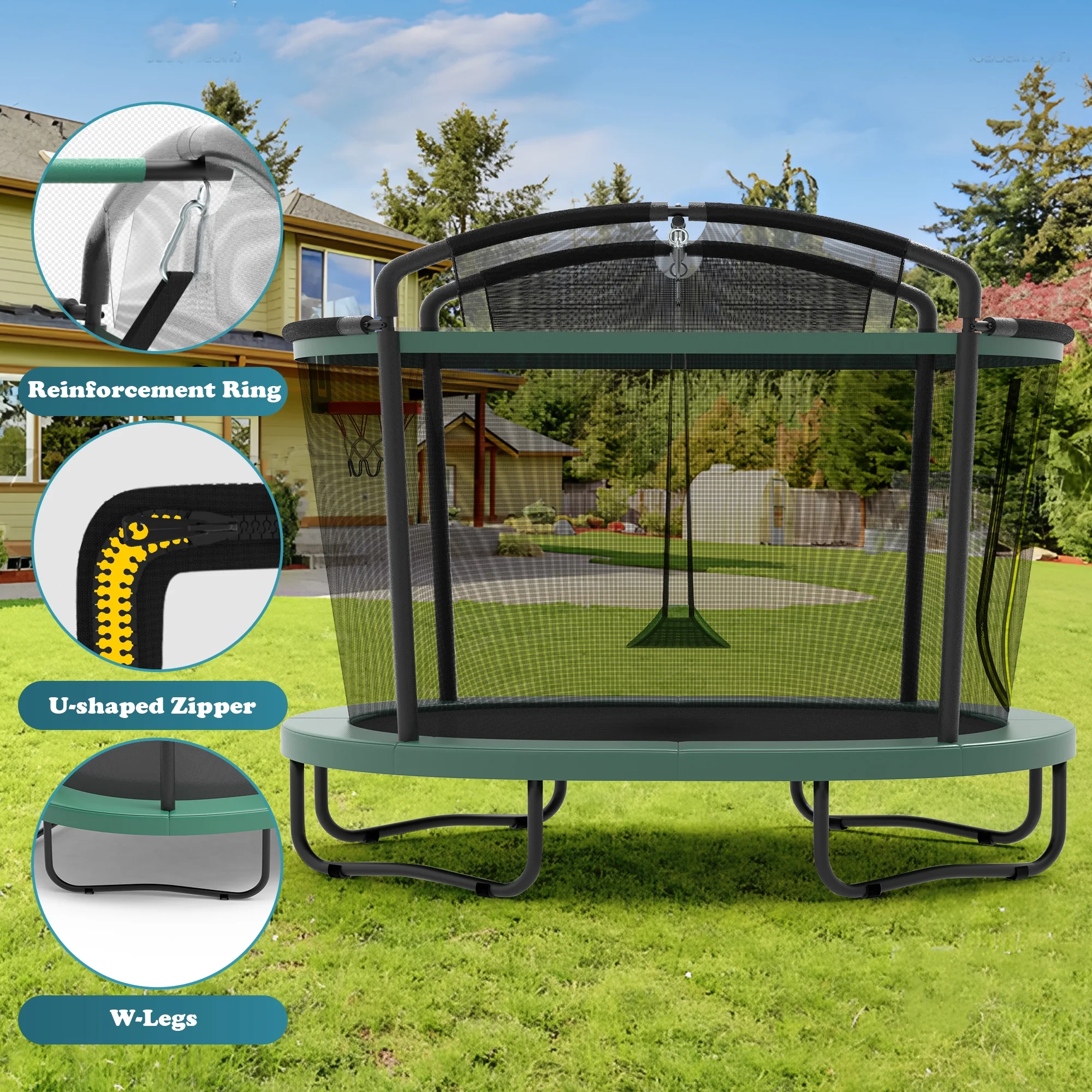 - 🤸♂️[Upgraded safety] - 360° high-density fence and double safety zippers, provide double protection for this outdoor trampoline.