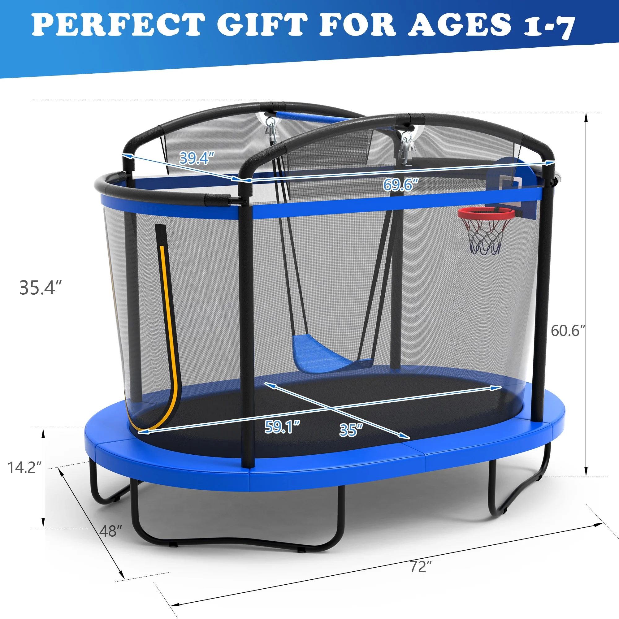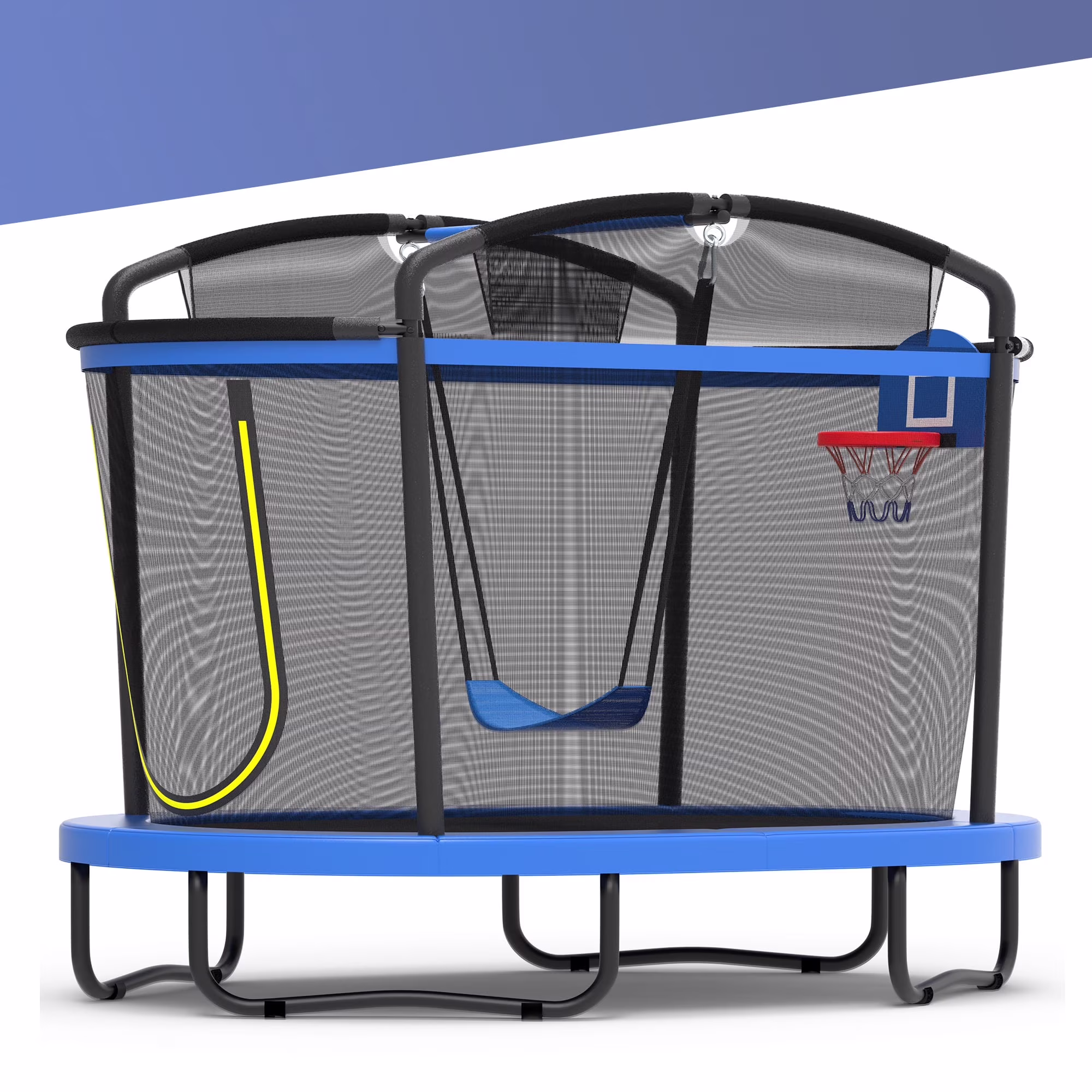 Give your child the ultimate outdoor experience with our innovative 3-IN-1 trampoline with basketball hoop & swing set, designed to spark joy while prioritizing safety. Perfect for kids aged 2+, this kids trampoline combo transforms any backyard into a playground of energy-burning adventures and healthy growth opportunities.