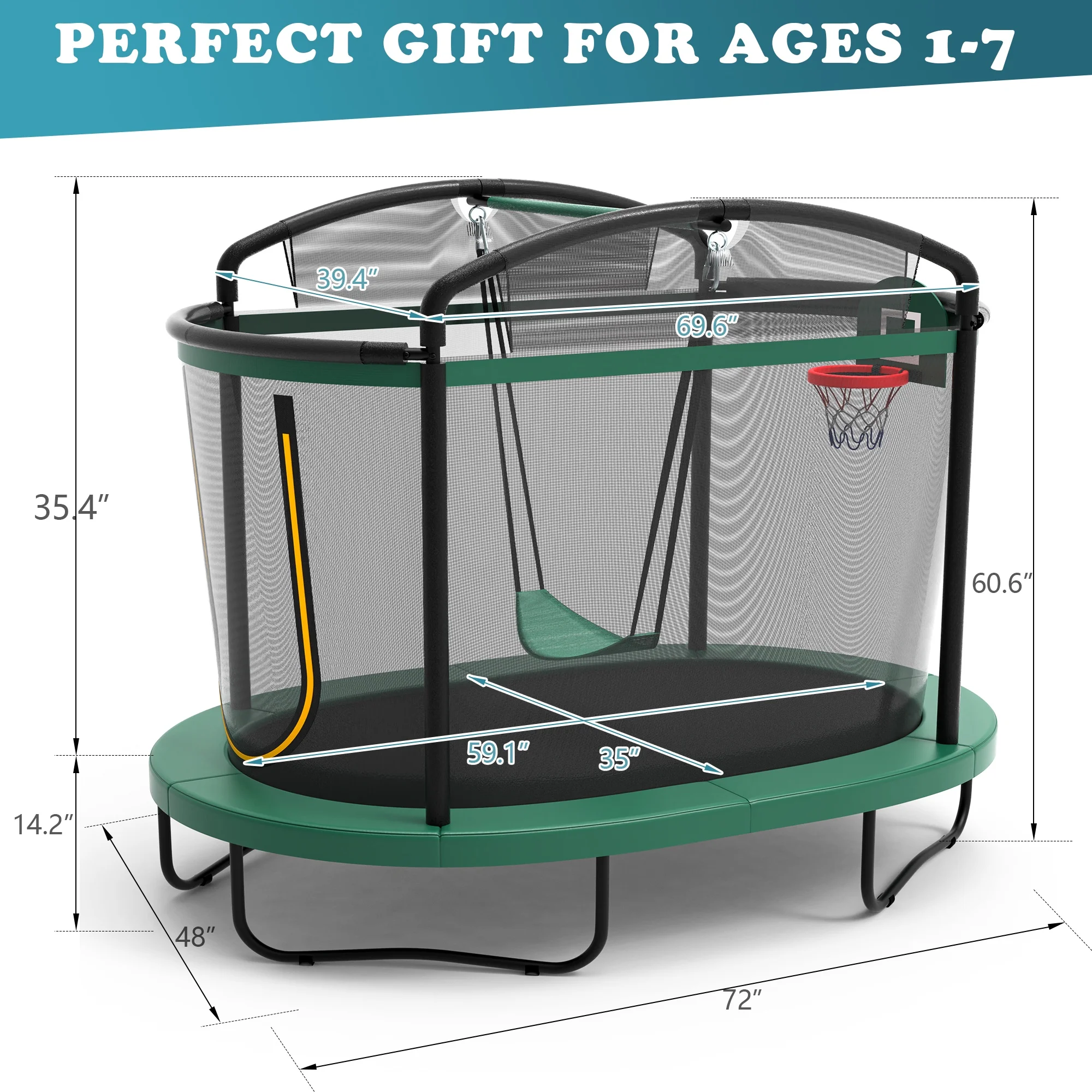 - 🤸♂️[3-IN-1 Design] - The clever combination of a trampoline, basketball set, swing, provides a variety of outdoor entertainment for children.
