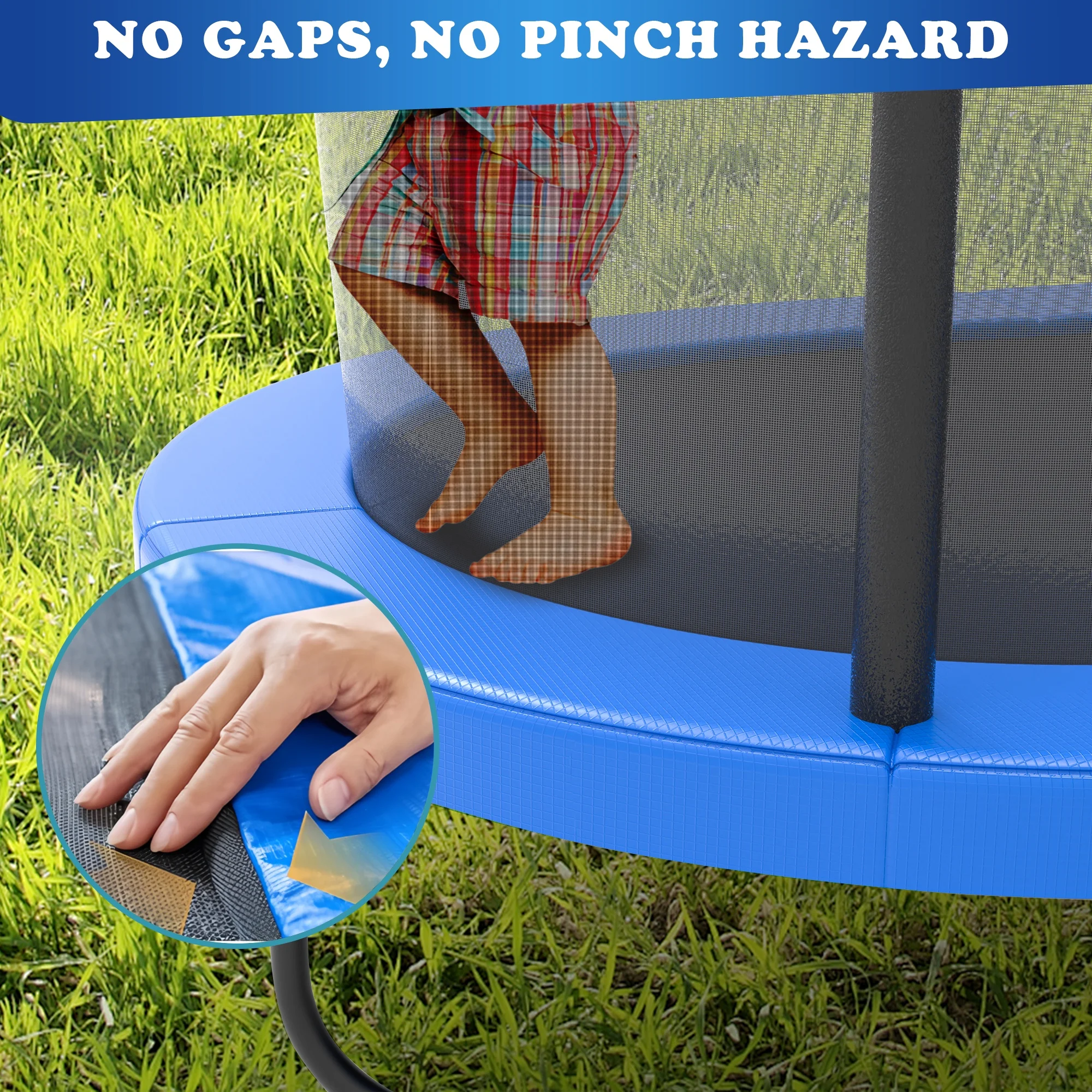 ✅ Safety First: Soft foam cushions cover all springs and upper pipes, preventing pinches and injuries. The 47" tall enclosure net and double-buckle zipper ensure secure play, while the 16" ground-to-mat height allows easy access for little ones .