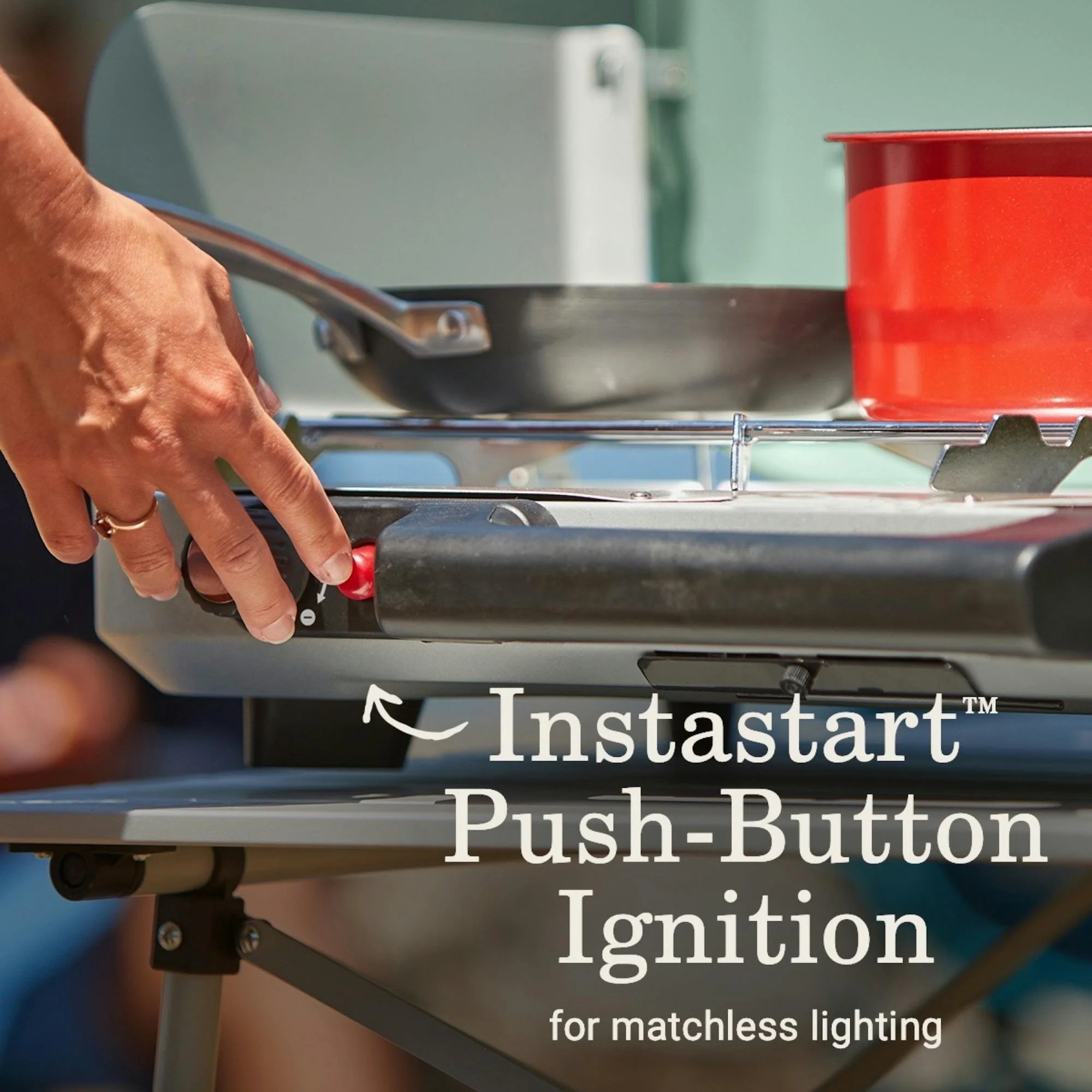 - MATCHLESS LIGHTING: Push-button Instastart™ ignition for automatic, matchless lighting; 3 adjustable burners