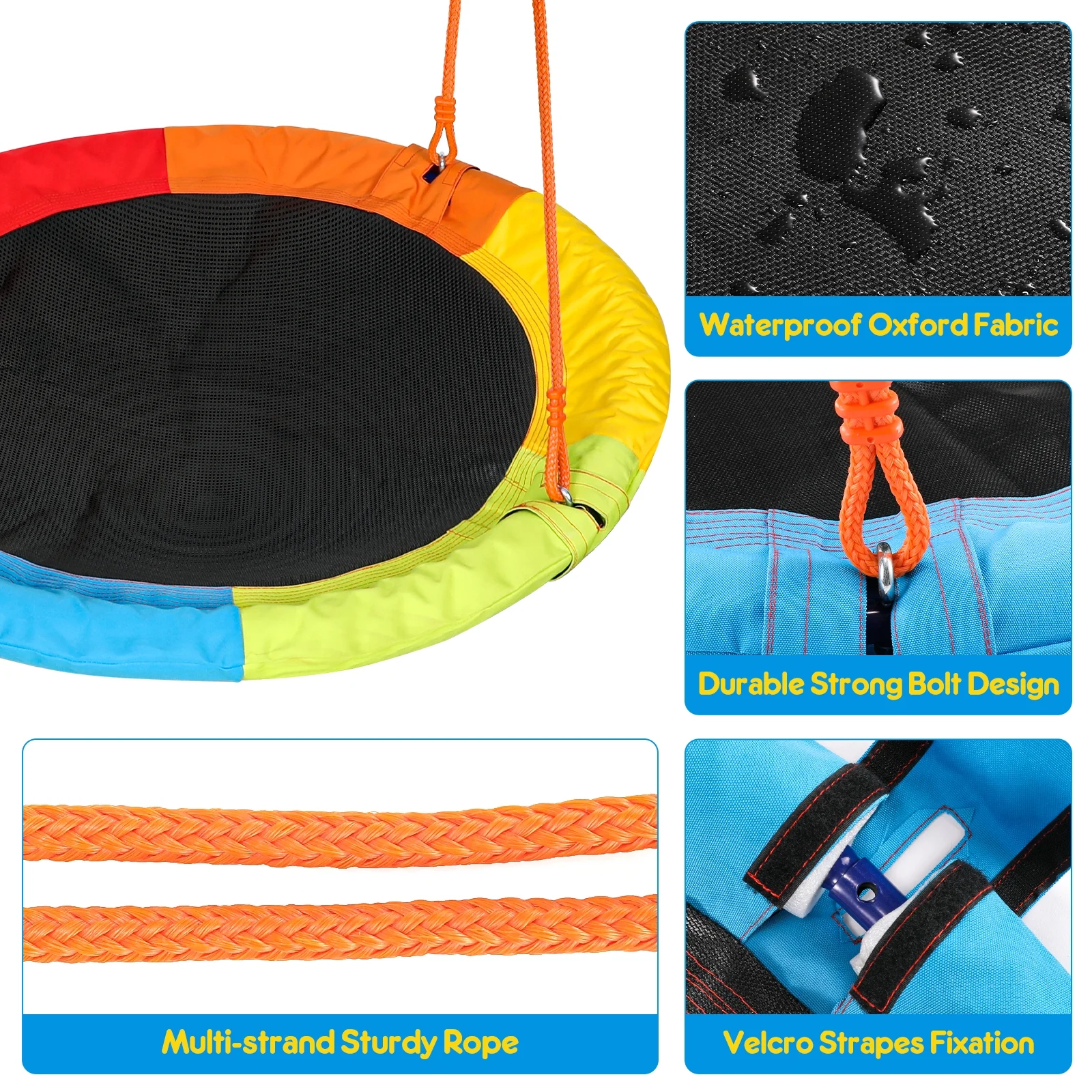 GIKPAL kid's swings for the backyard, are ideal for sociable play and feature a giant 40” saucer swing seat that is big enough for kids, your family, and friends to play together. Outdoor playset children and their friends can sit, kneel, or lay on the sturdy swing seat and have quality bonding time.