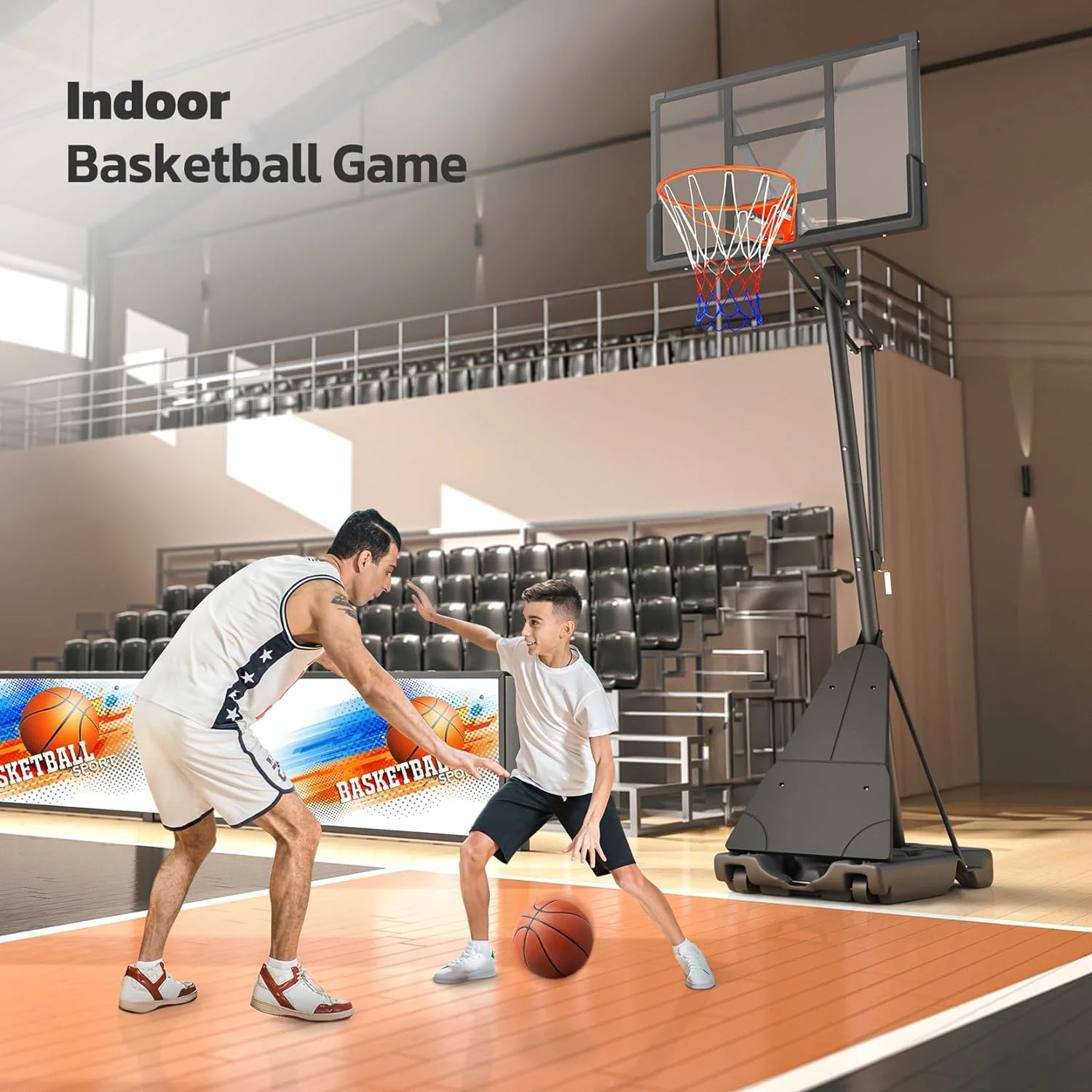 🏀Enlarged Base with Front Board sturdier and safer,Heavy Duty Water or sand filled Base