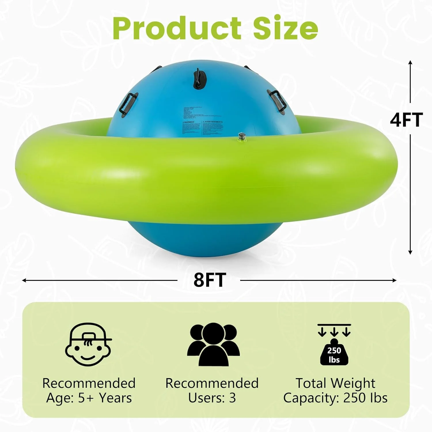 - 🏰Inflatable Dome Rocker: The giant 8FT x 4FT inflatable rocking ball can provide a variety of ways to play with by kids’ exploring, including rolling, climbing and bouncing. It is suitable for 3 kids play together, who are 5+ years old and weight max 250lbs in total.