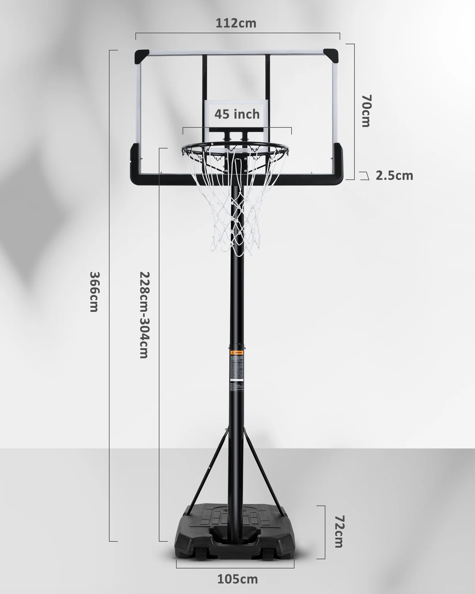 1. Do not hang from the basketball hoop’s rim or climb on the pole. Do not climb on the base or structure in general, as this could result in serious injuries.