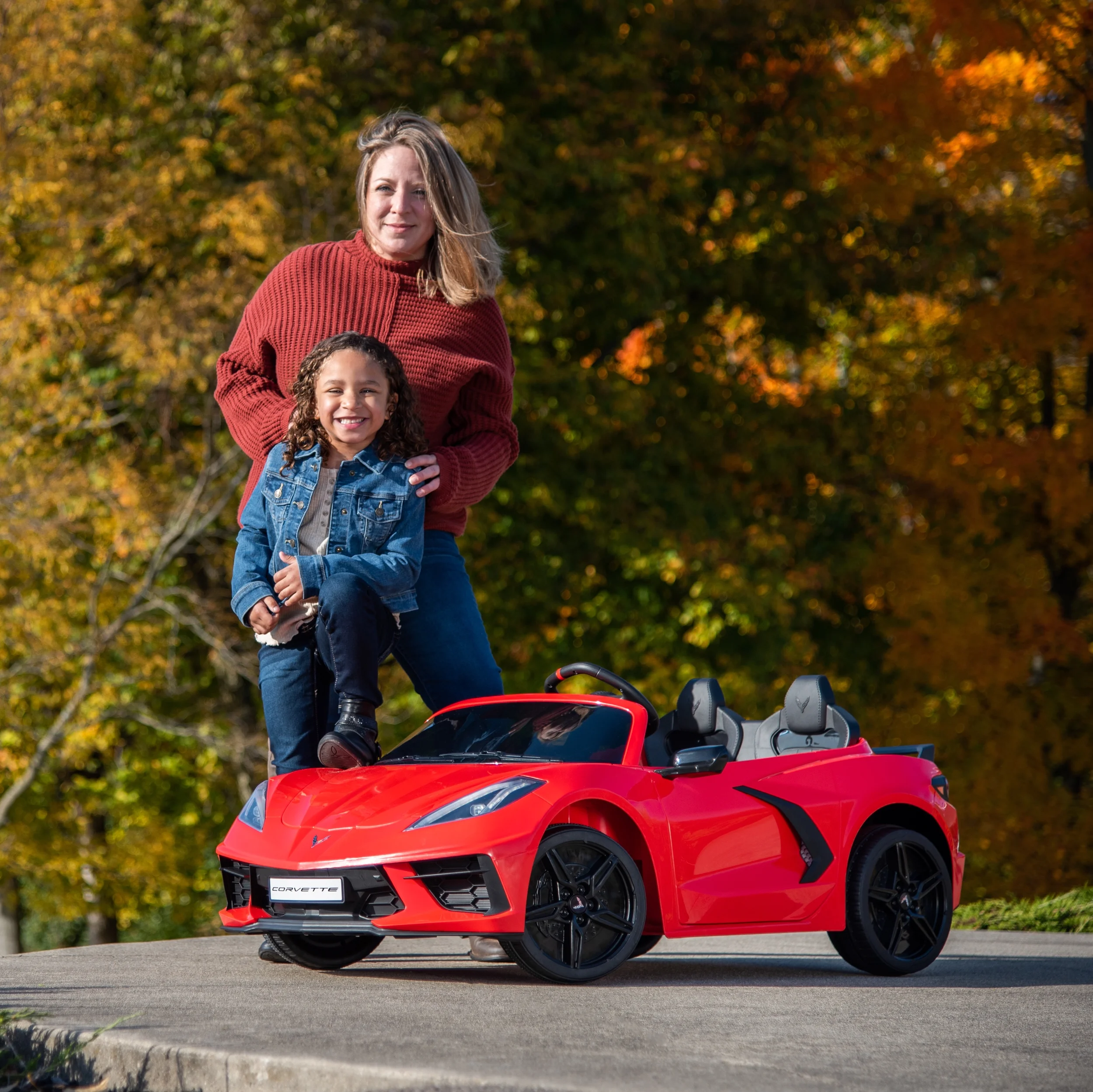 Let your child experience the thrill of driving with the Huffy Corvette Stingray 12-Volt Ride-in Car! Designed for kids aged 3 and up, this sleek red ride-on mimics the iconic Corvette Stingray with realistic decals and working headlights1. The 12-volt battery powers the car to speeds of 2.5 mph on low and up to 5 mph on high.