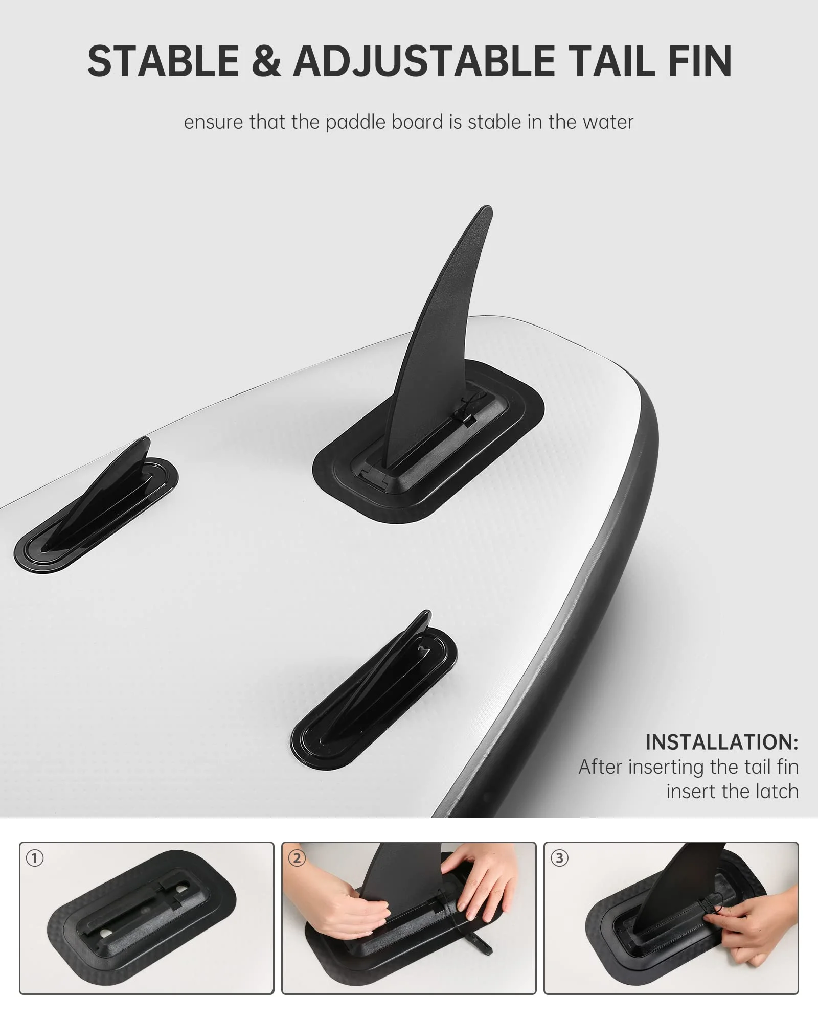 - The inflatable paddle board with 8 inches center fin gives great straight tracking and water splitting. Therefore, paddle board promotes better balance. The fins of the inflatable paddle board located on both sides are for making a turn easily and increase the flexibility. 5 mm large EVA cushioned deck of the paddle board with a patterned design increases both comfort and friction(anti-slip)