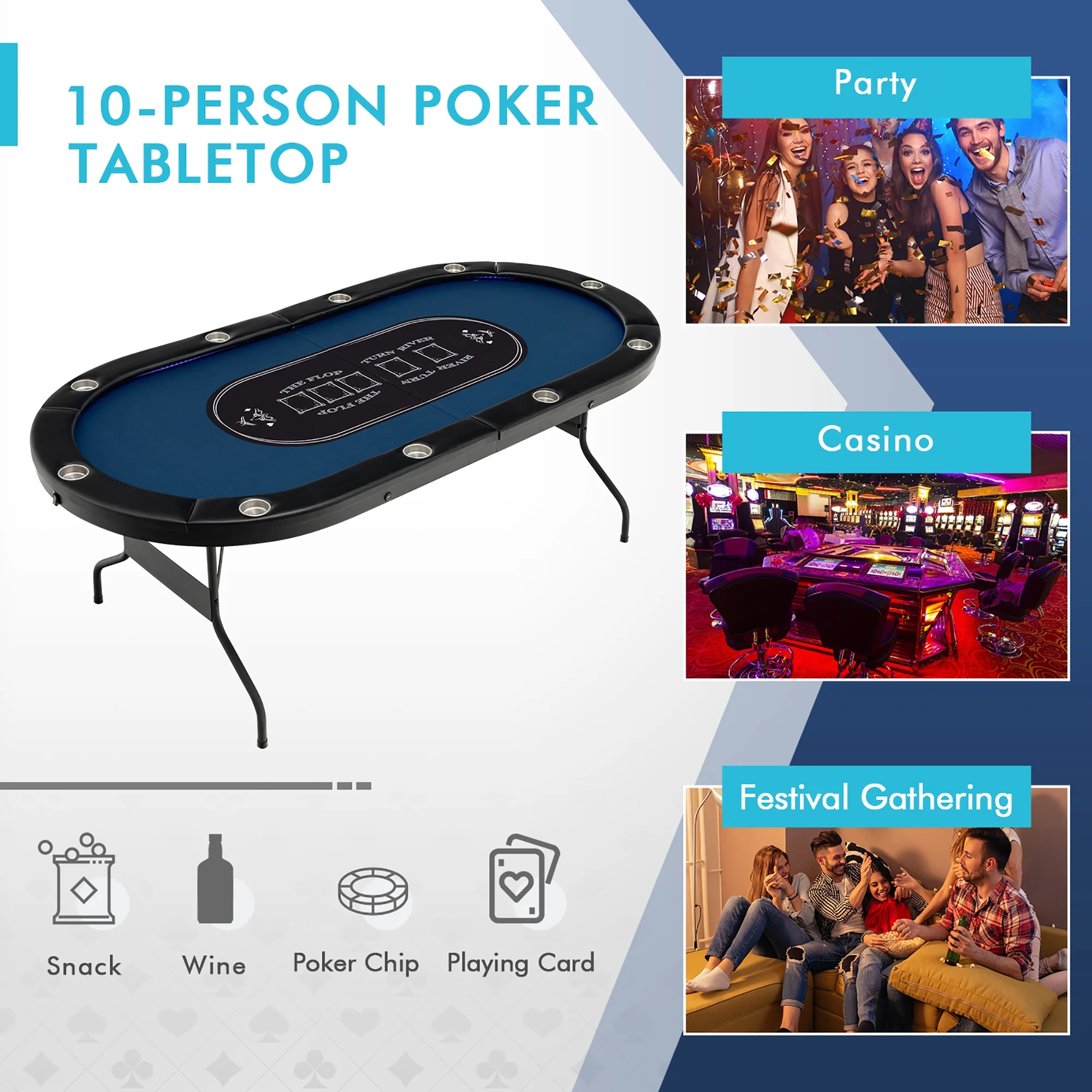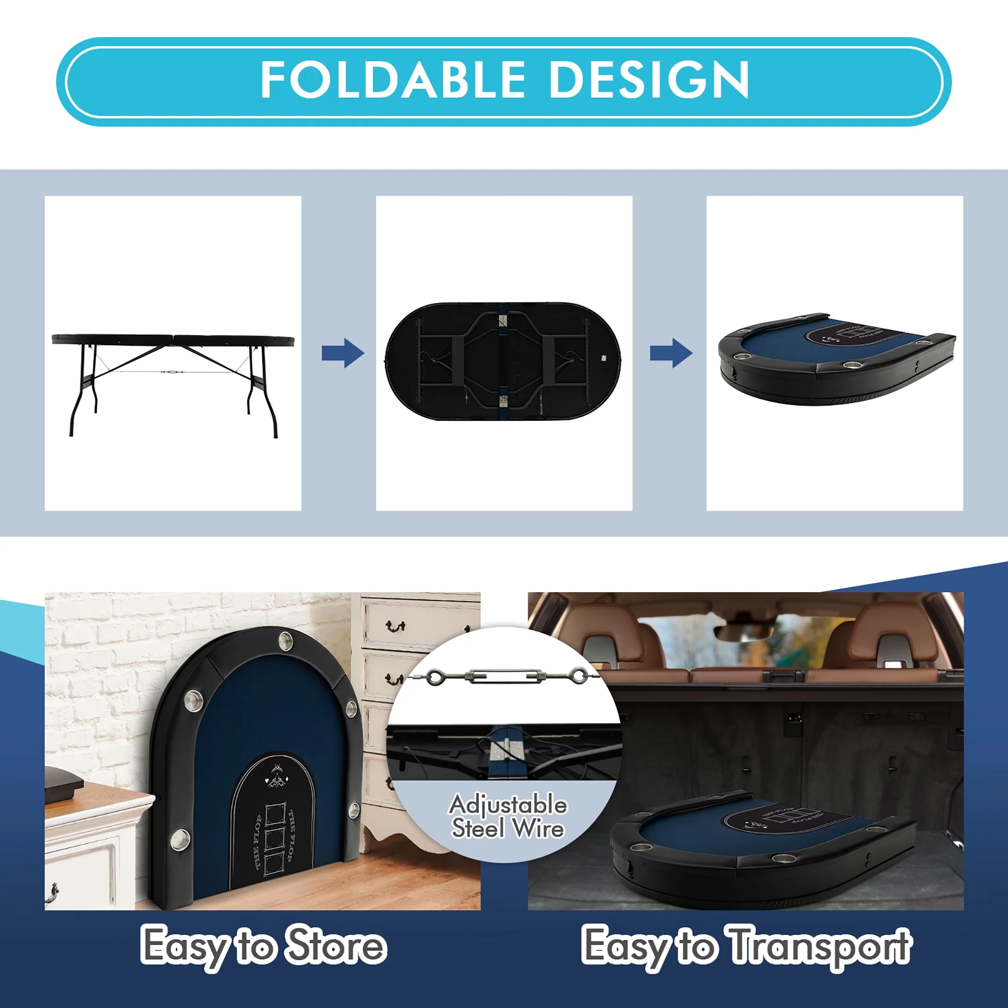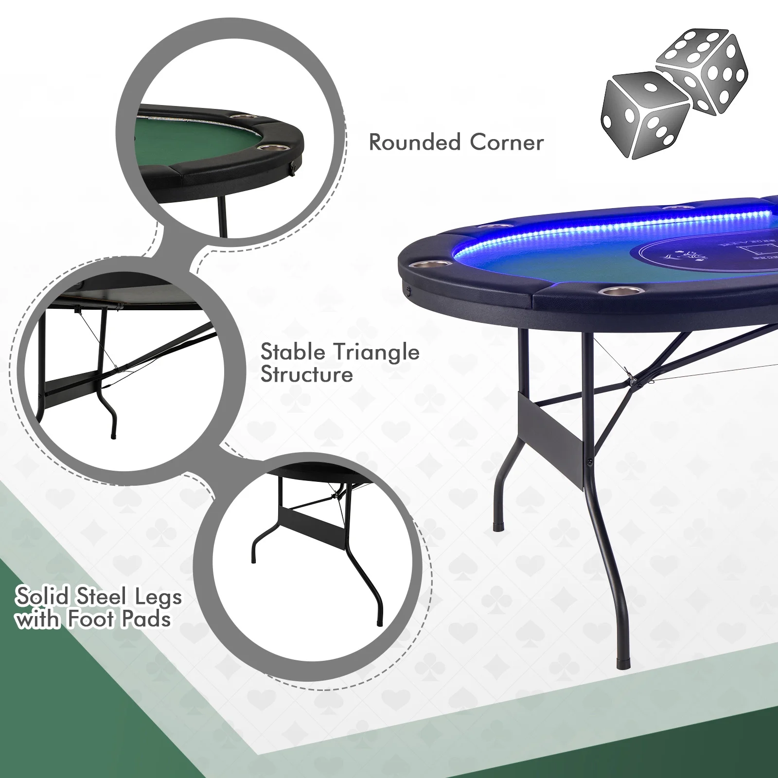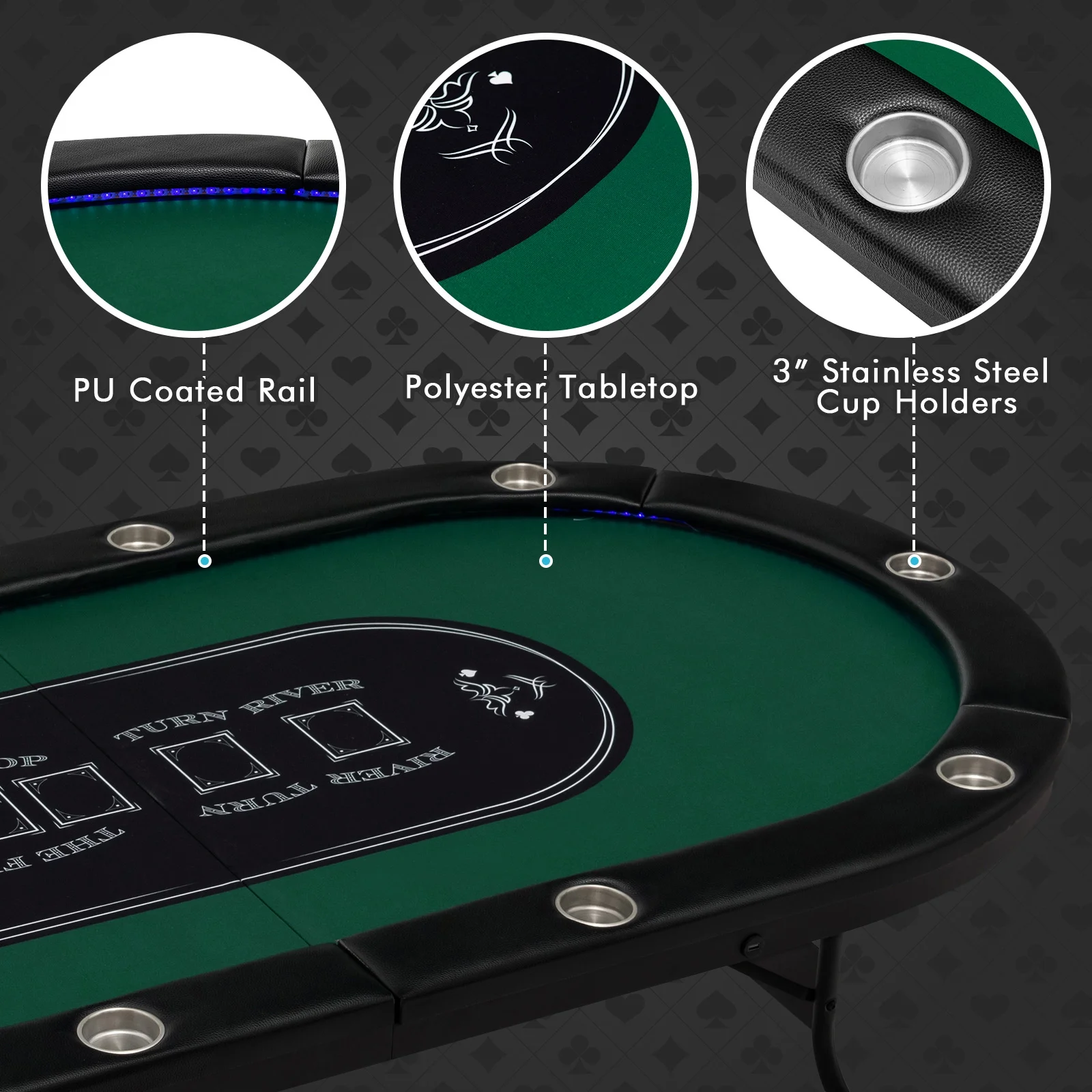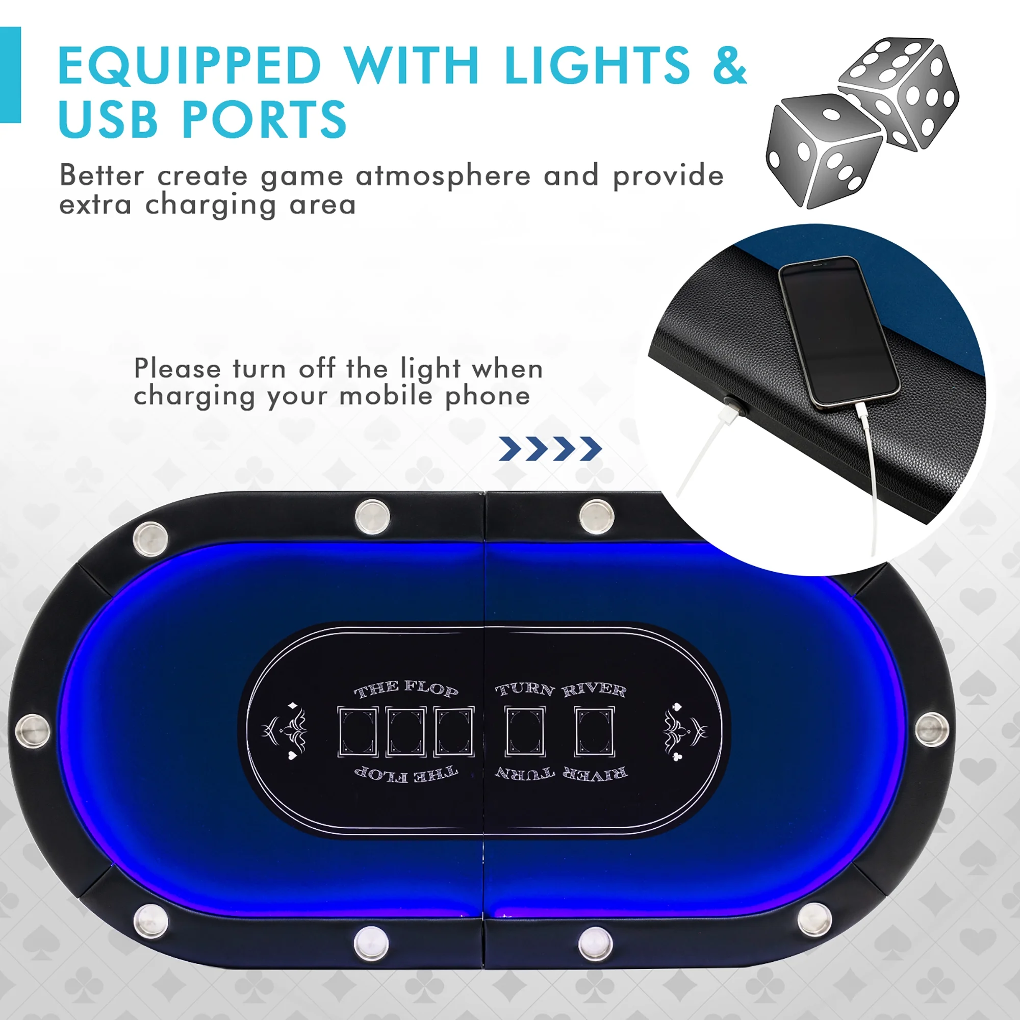 Costway Foldable, USB Ports, Led Lights 10 Player Poker Table, Blue/Black