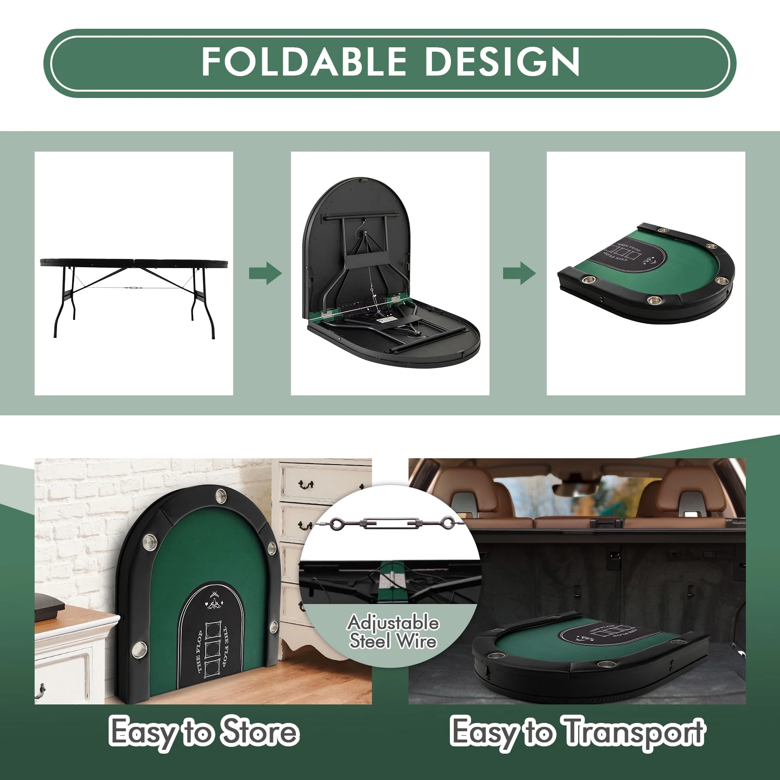 - Spacious 10-Player Poker Tabletop: Measuring 75''(L) x 32.5''(W), this oval poker tabletop accommodates up to 10 players, providing ample space for snacks, poker chips, and playing cards. It includes 10 cup holders (each with a 3'' diameter) for drinks