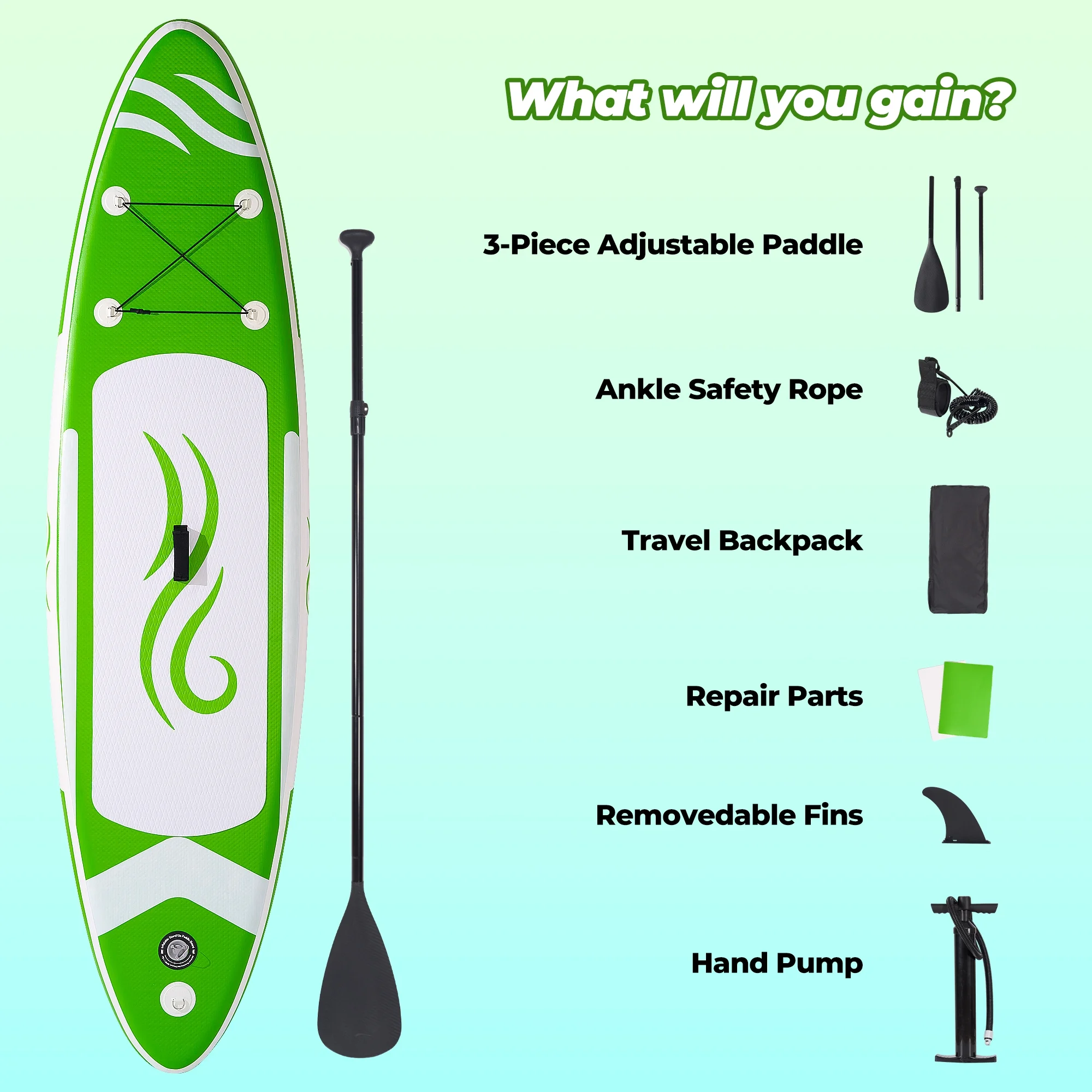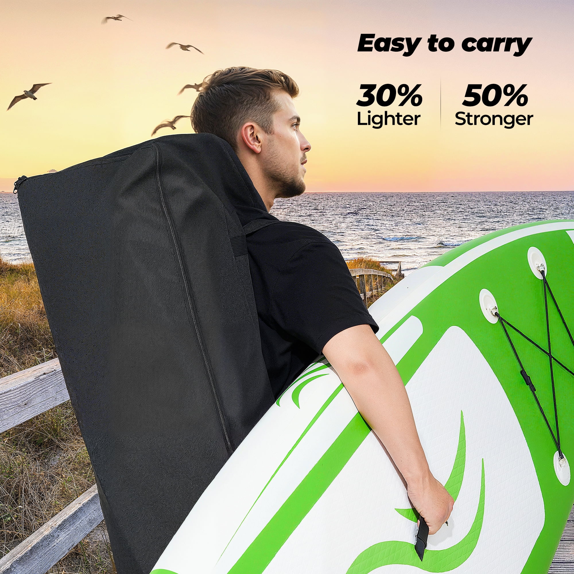 - Pack and go effortlessly with the lightweight, carrying backpack featuring padded straps and ample storage for gear—perfect for road trips or beach days with our paddle board.