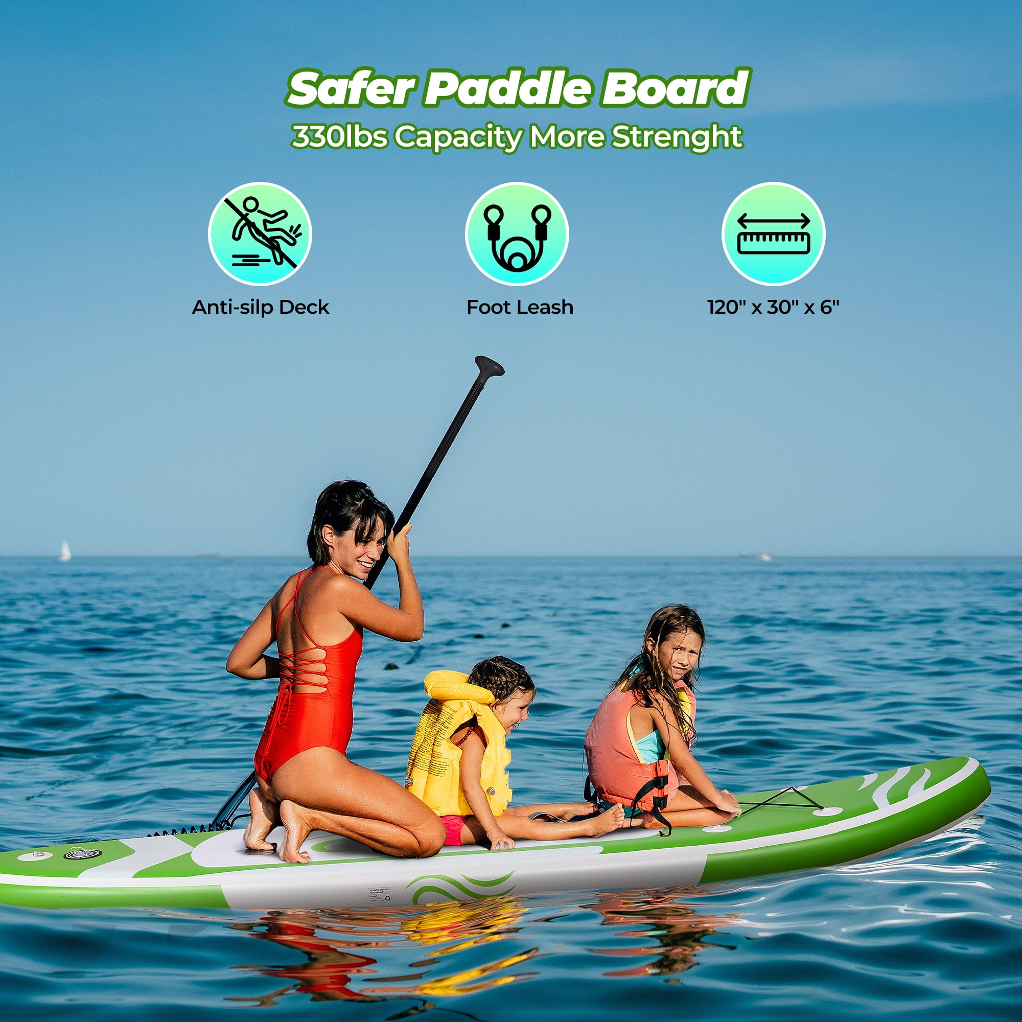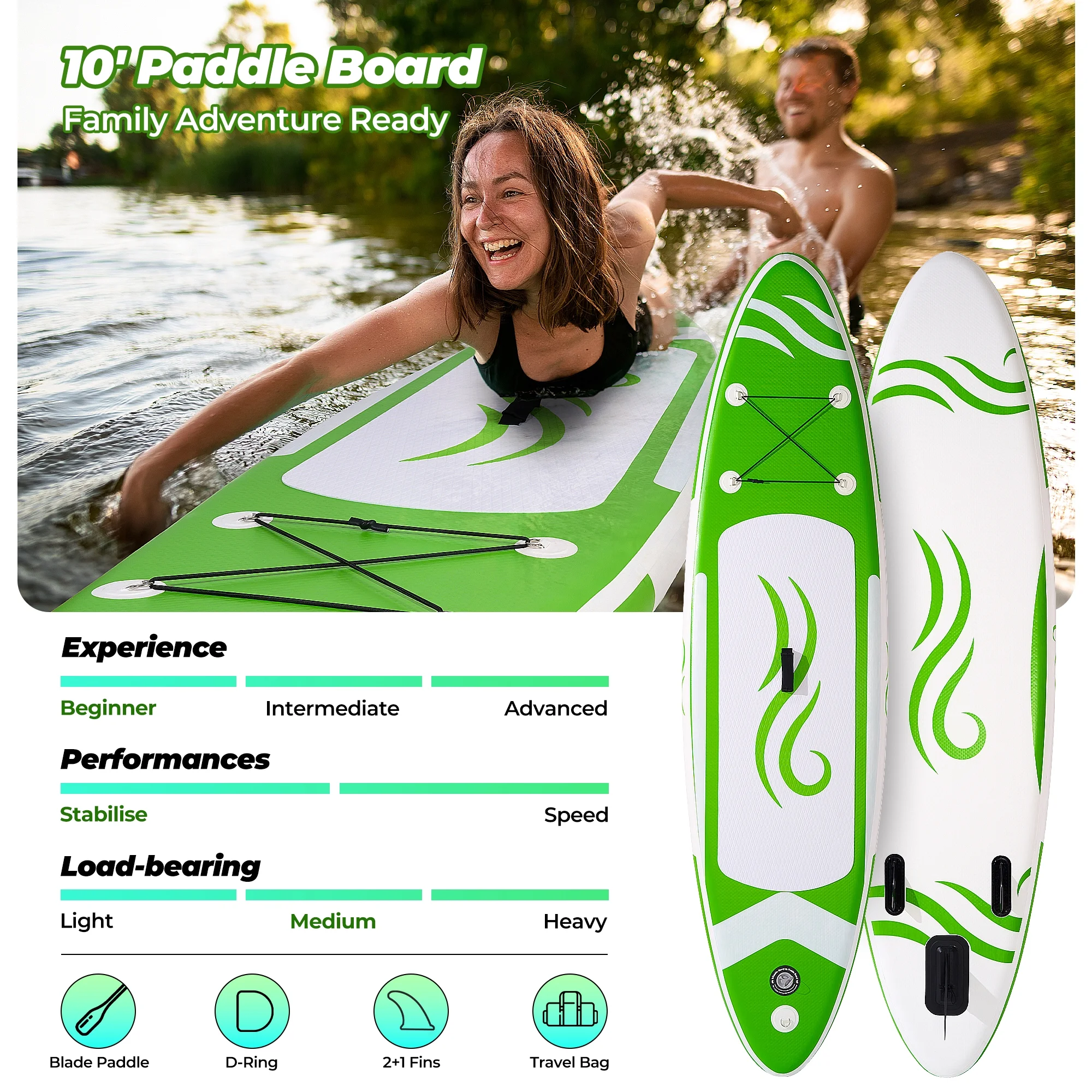 - Ideal for family outings and first-time paddlers, this inflatable paddle board offers exceptional value with durable construction that accommodates multiple users without compromising performance.Engineered with a 2+1 paddle board fin system for precise tracking and balance, plus a textured anti-slip deck and detachable ankle leash to minimize slips and enhance control.