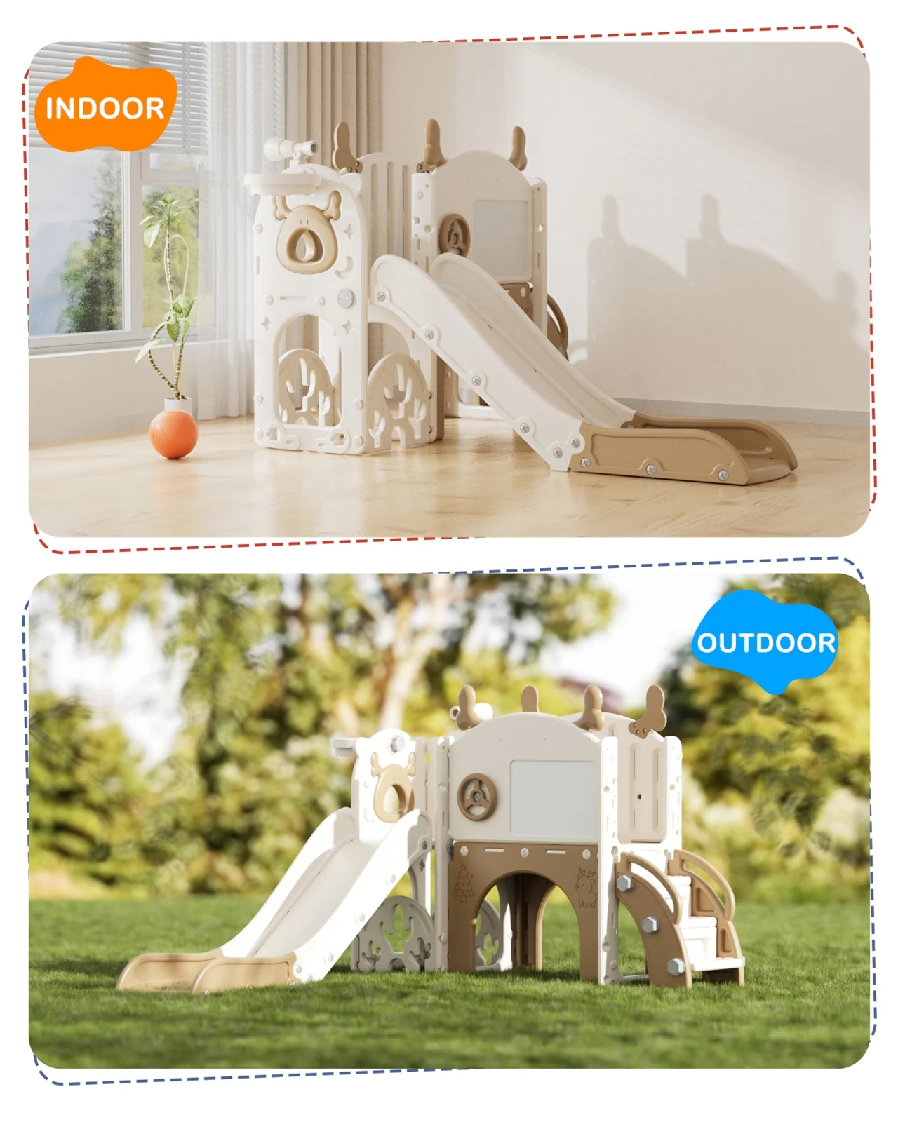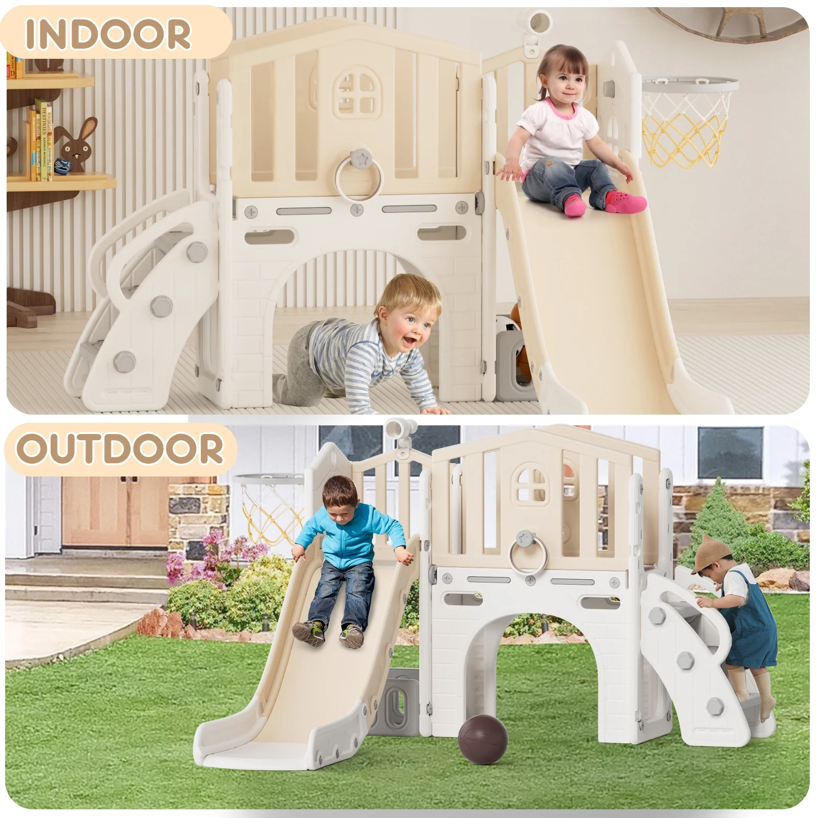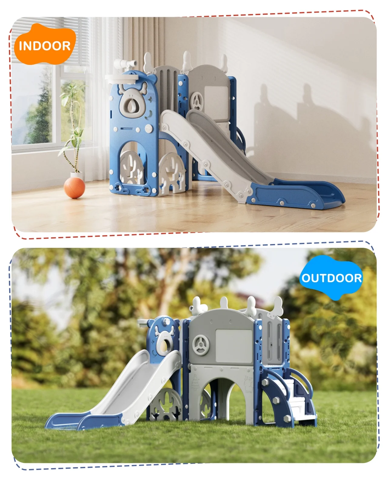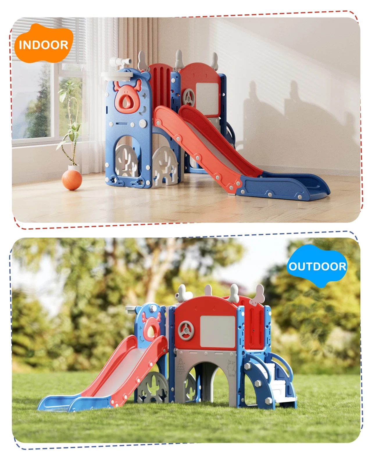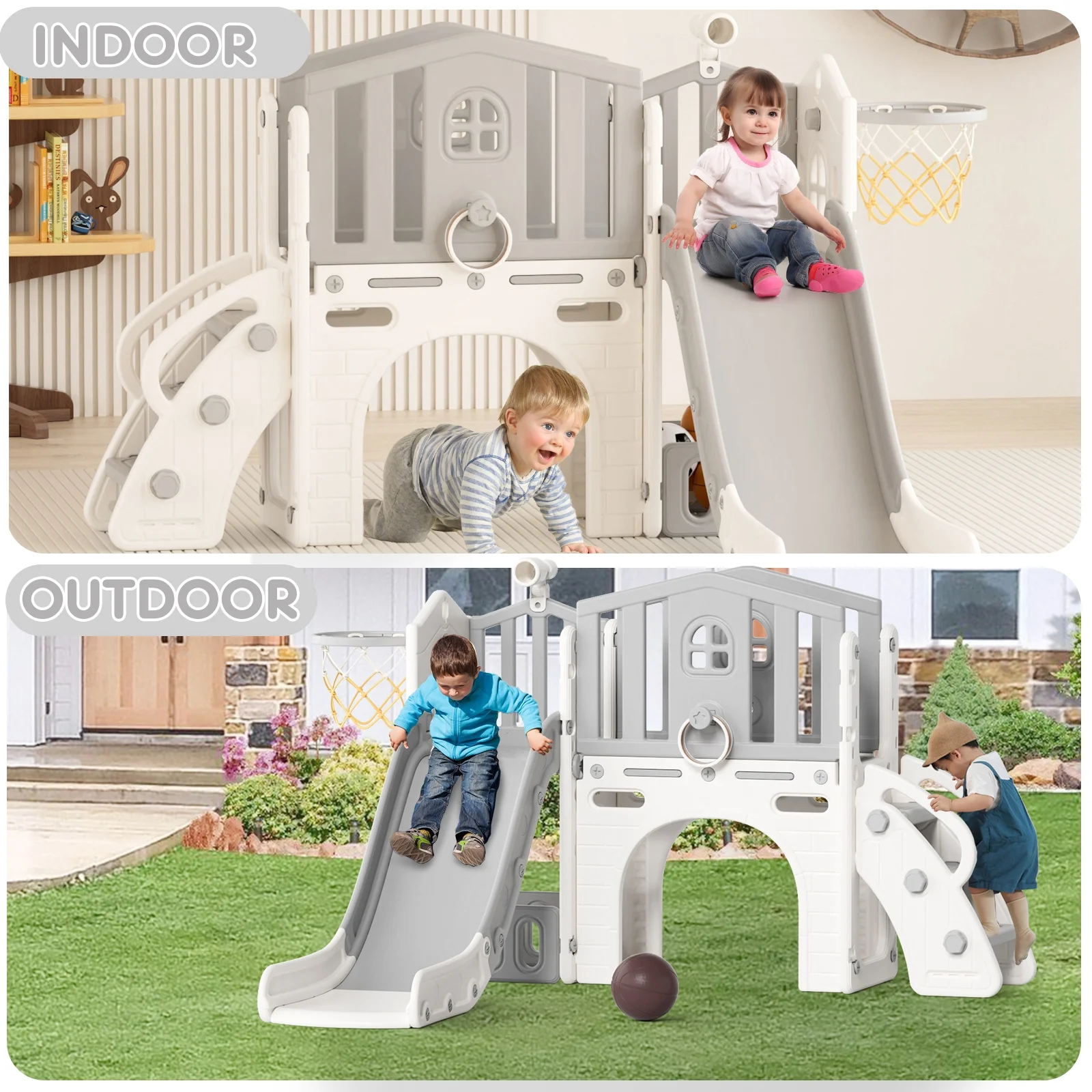 - Indoor and Outdoor Playset: This slide weight easily to move, suitable for indoor or outdoor use, our toddler slide is versatile enough to accommodate various play environments, providing endless entertainment year-round