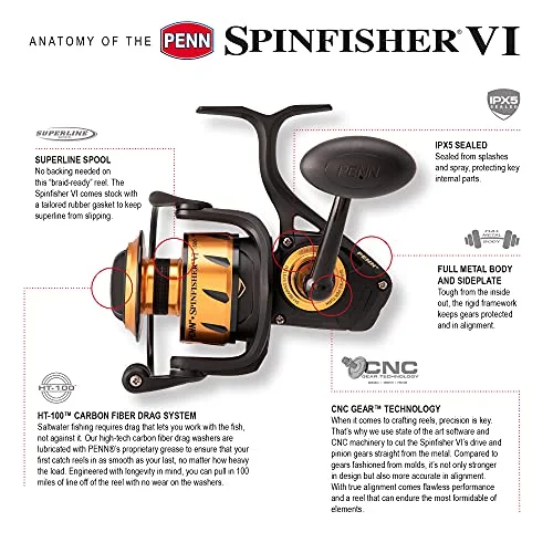 - 6 TOTAL BEARINGS: The Spinfisher VI features 5 stainless steel ball bearings plus 1 instant anti-reverse bearing to provide smooth operation for any saltwater fishing experience.