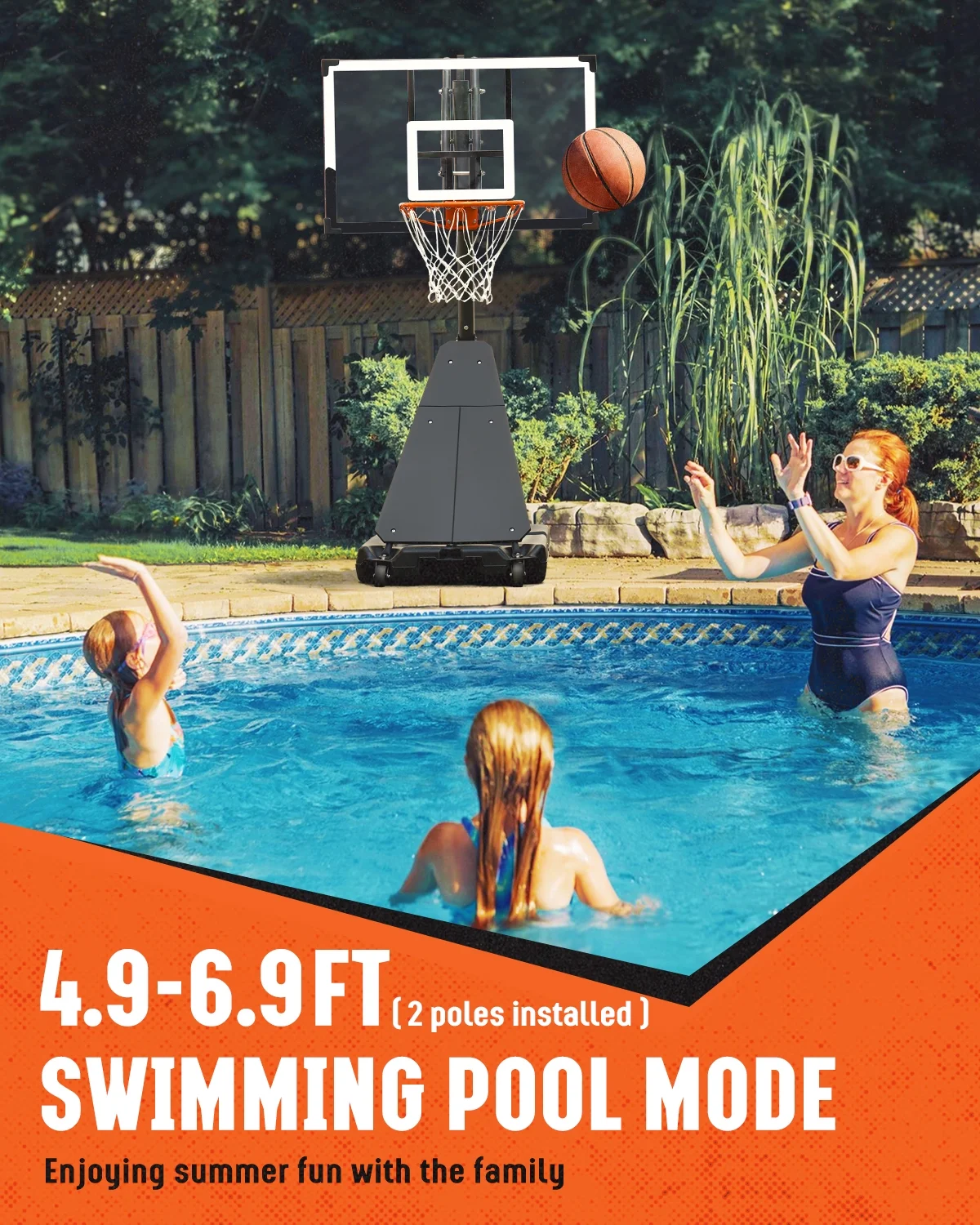 - 【Portable and Mobile, Switch Scenes at Will】The basketball court with 2 built-in front wheels is easy to move anywhere. You can use it in the yard, pool, beach, playground, courtyard, living room, and other scenes to meet your various sports needs. It's sturdy enough to grow with your child, providing him with a perfect playing environment. You can also use it to hold a pool basketball party, enhance the atmosphere of family gatherings, and enjoy summer fun.