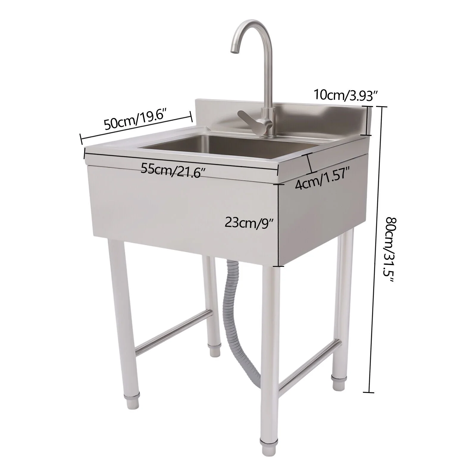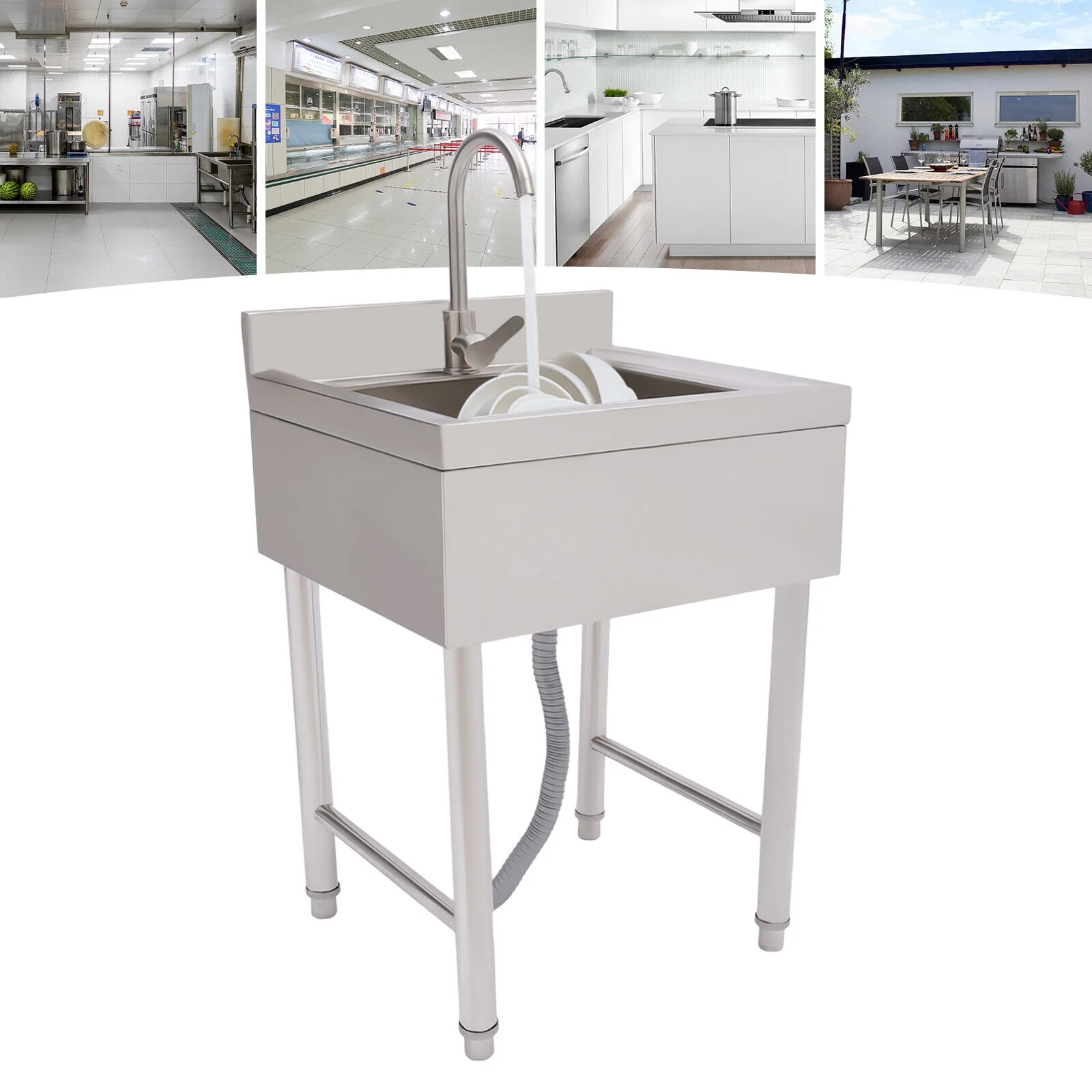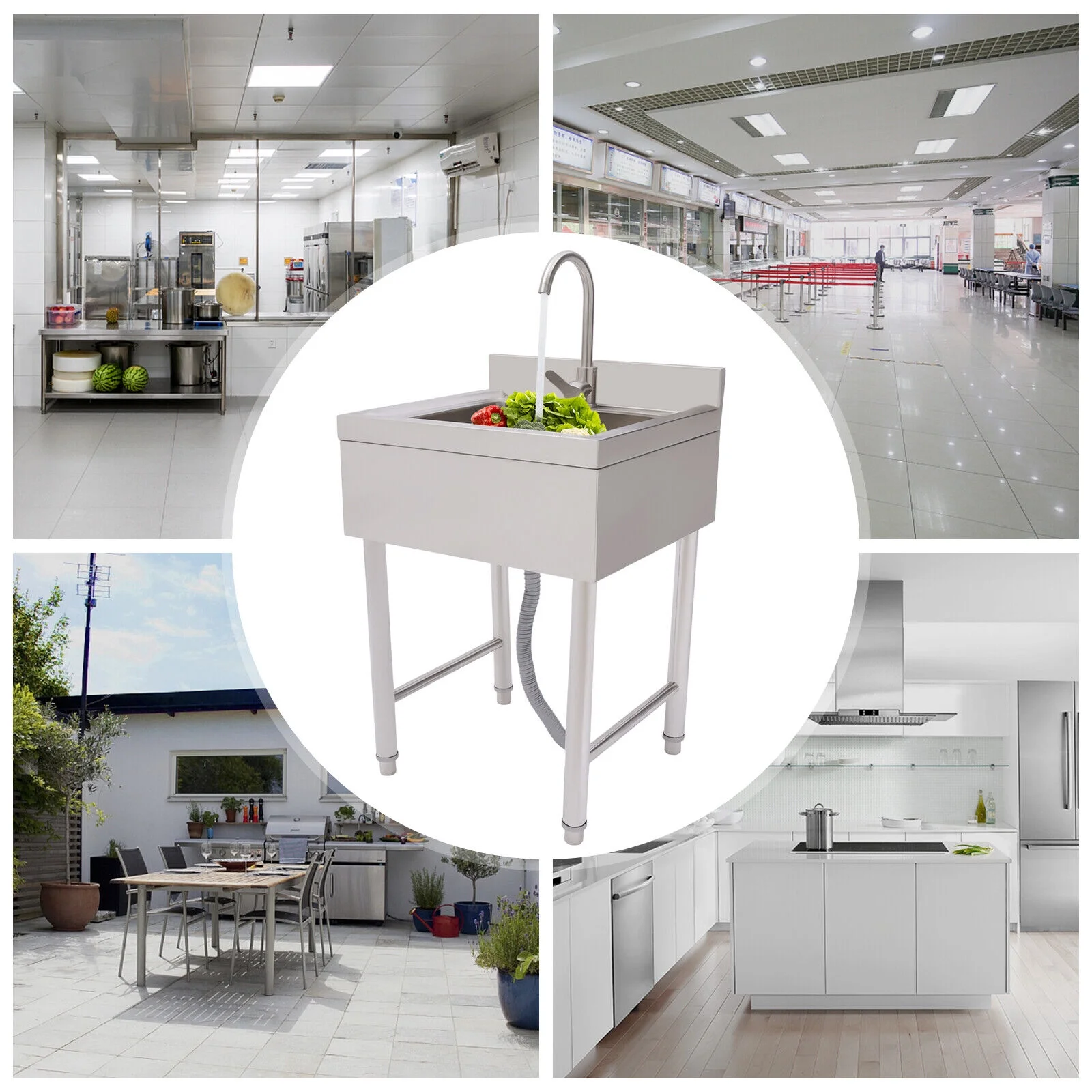 This commercial stainless steel sink is suitable for use in restaurants, canteens, snack bars, and more. With its large capacity, easy cleaning, and corrosion resistance, it is a great addition to any kitchen or laundry room.