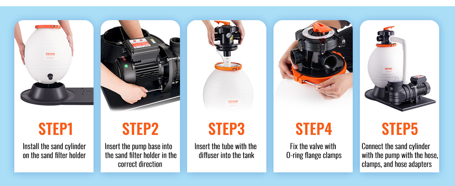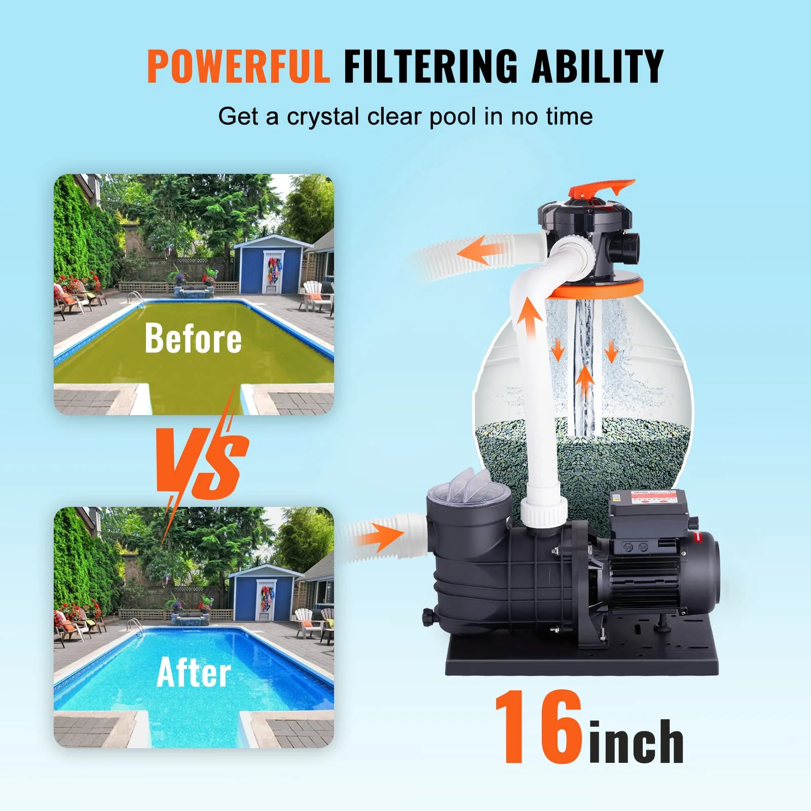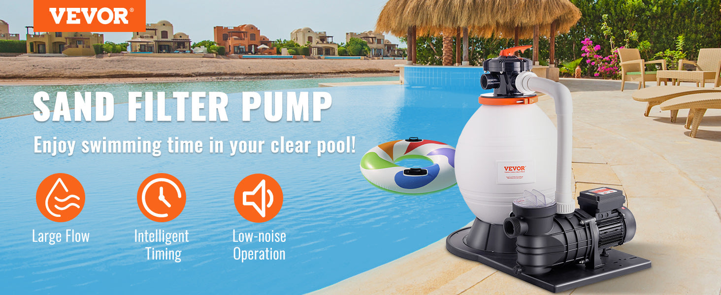 - Meet All Your Pool Needs: Our pool sand pump is versatile and suitable for both domestic and commercial pools. including courtyard pools. community pools. small water parks. and above-ground pools. The complete set includes a pool pump. sand filter. 6-way multi-port valve. and other necessary accessories for your convenience.