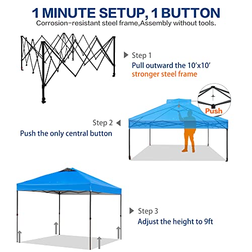 • 10x10ft 1-Person Easy Setup Pop Up Canopy Tent with Vented Roof