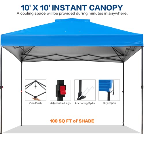 • ��10x10 FT LARGE CAPACITY��The Pop Up canopy tent is enough to accommodate booths and multiple chairs to meet your daily rest and sunshade or commercial activities.?It provides a true 100 sq ft of cooling space anywhere in just minutes.