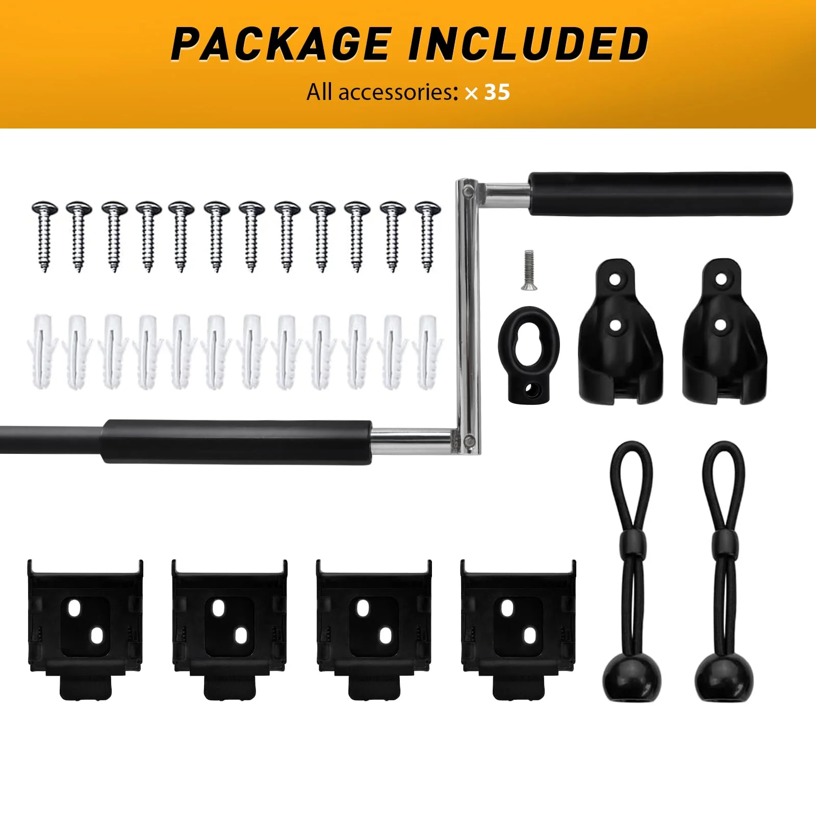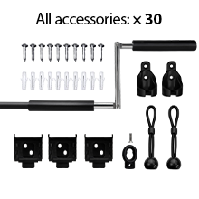 We also meticulously selected accessories. using drywall plastic anchor x 8. classic 304 stainless steel screw x 8. durable roller bracket x 2. durable bungee bracket x 2. good-looking bungee x 2.