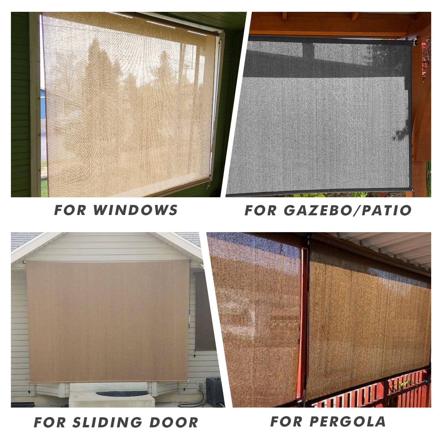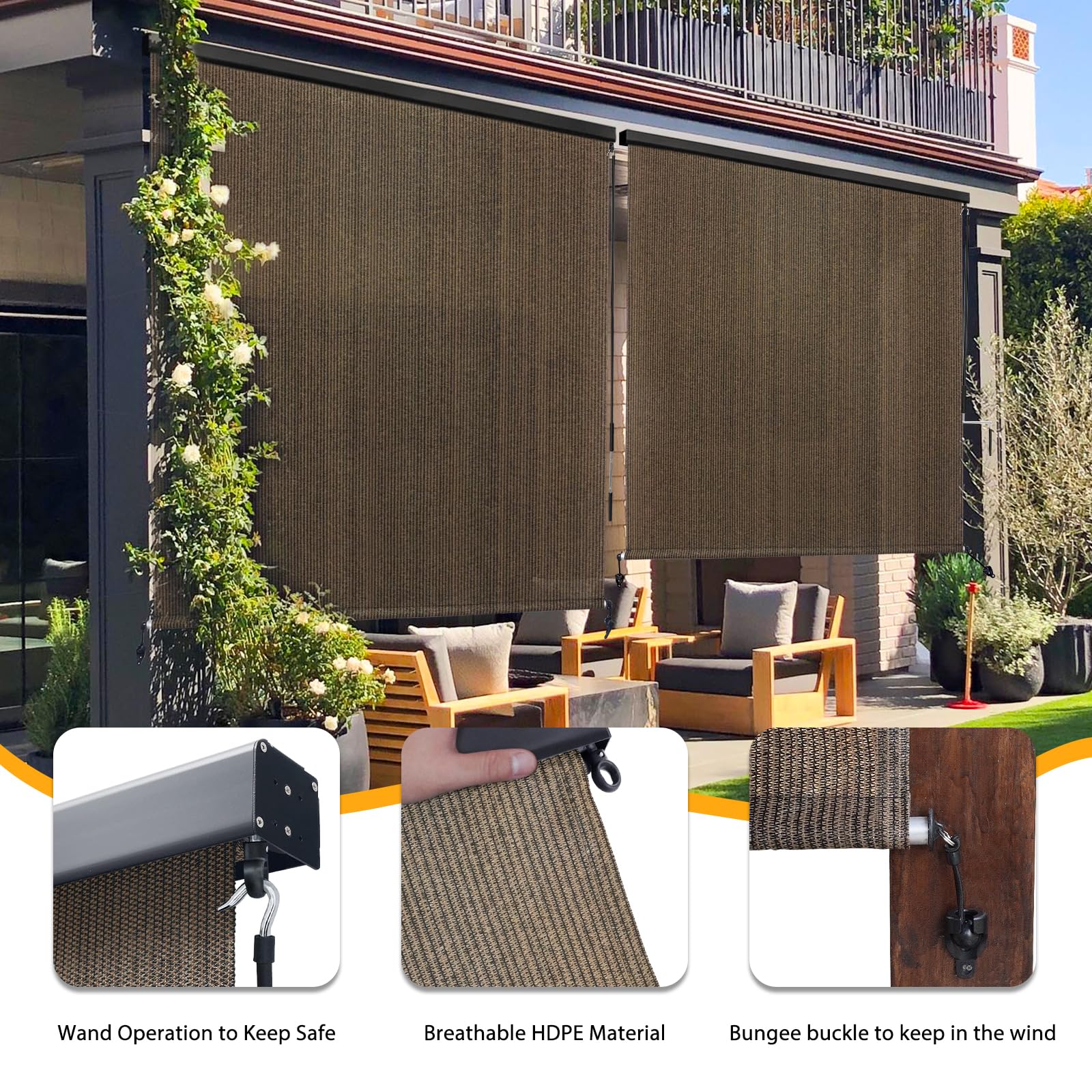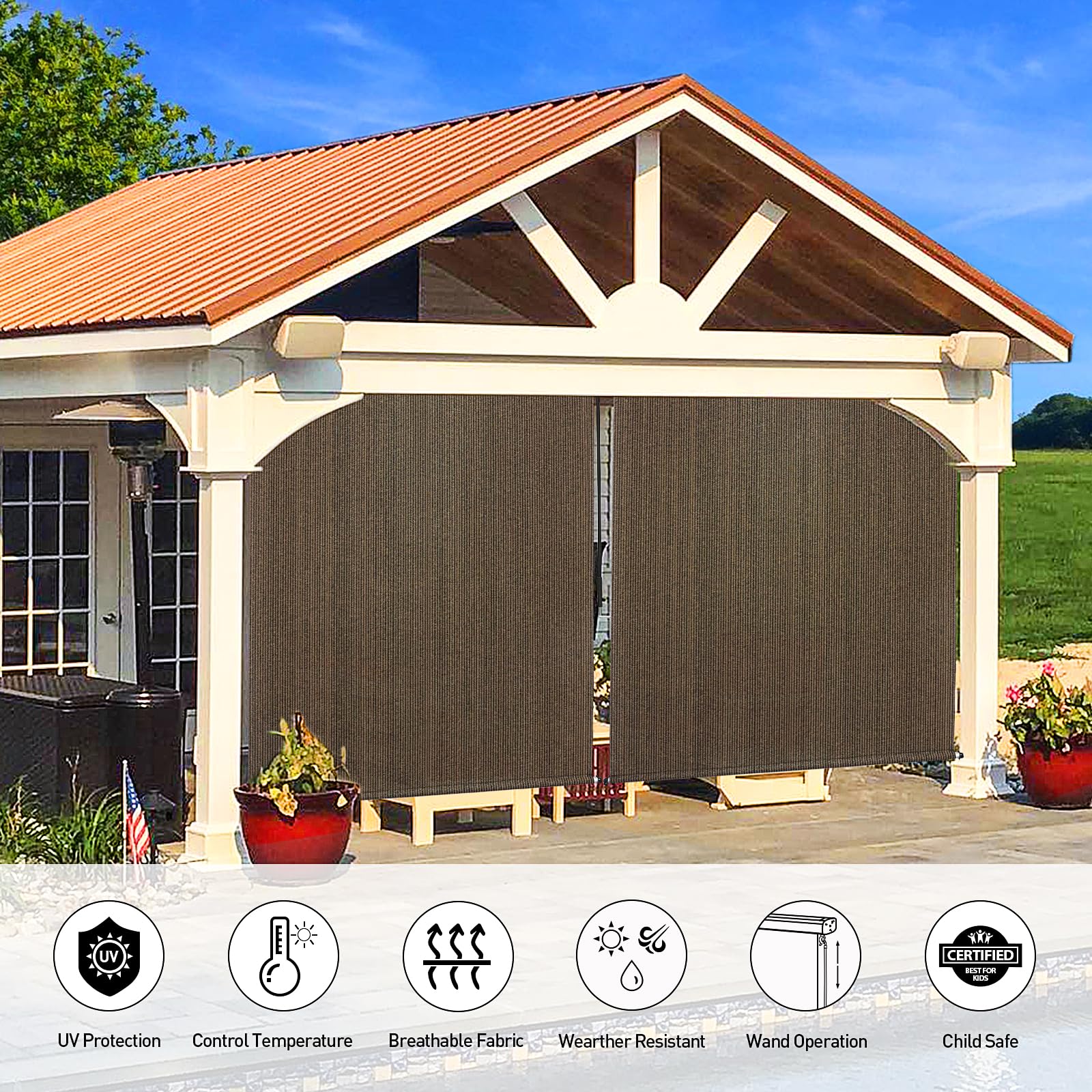 - ��Versatile for Any Outdoor Setting�� The Outdoor Roller Shades are the perfect fit for a wide range of outdoor spaces. including porches. gazebos. patios. backyards. decks. balconies. pergolas. and more. Tailor the ambiance of your chosen scene with ease and style. from tranquil mornings with a cup of coffee to vibrant garden parties or cozy family dinners.