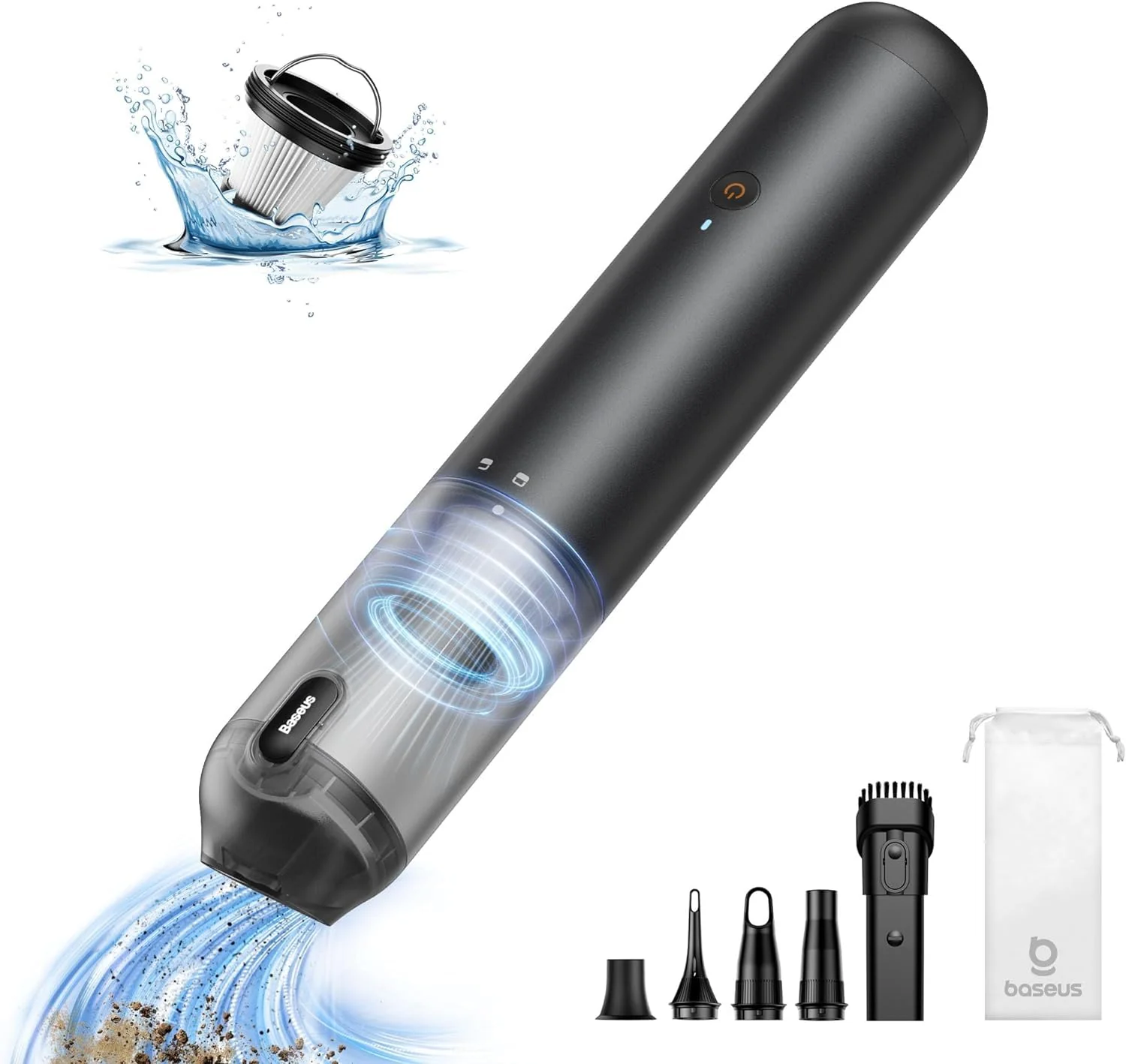 - 12.000Pa MEGA SUCTION FORCE CAR VACUUM: Adopted upgraded driver system for a more powerful performance. Baseus Hand Vacuum outputs high-speed constant airflow. maintaining peak suction power during the whole vacuuming process