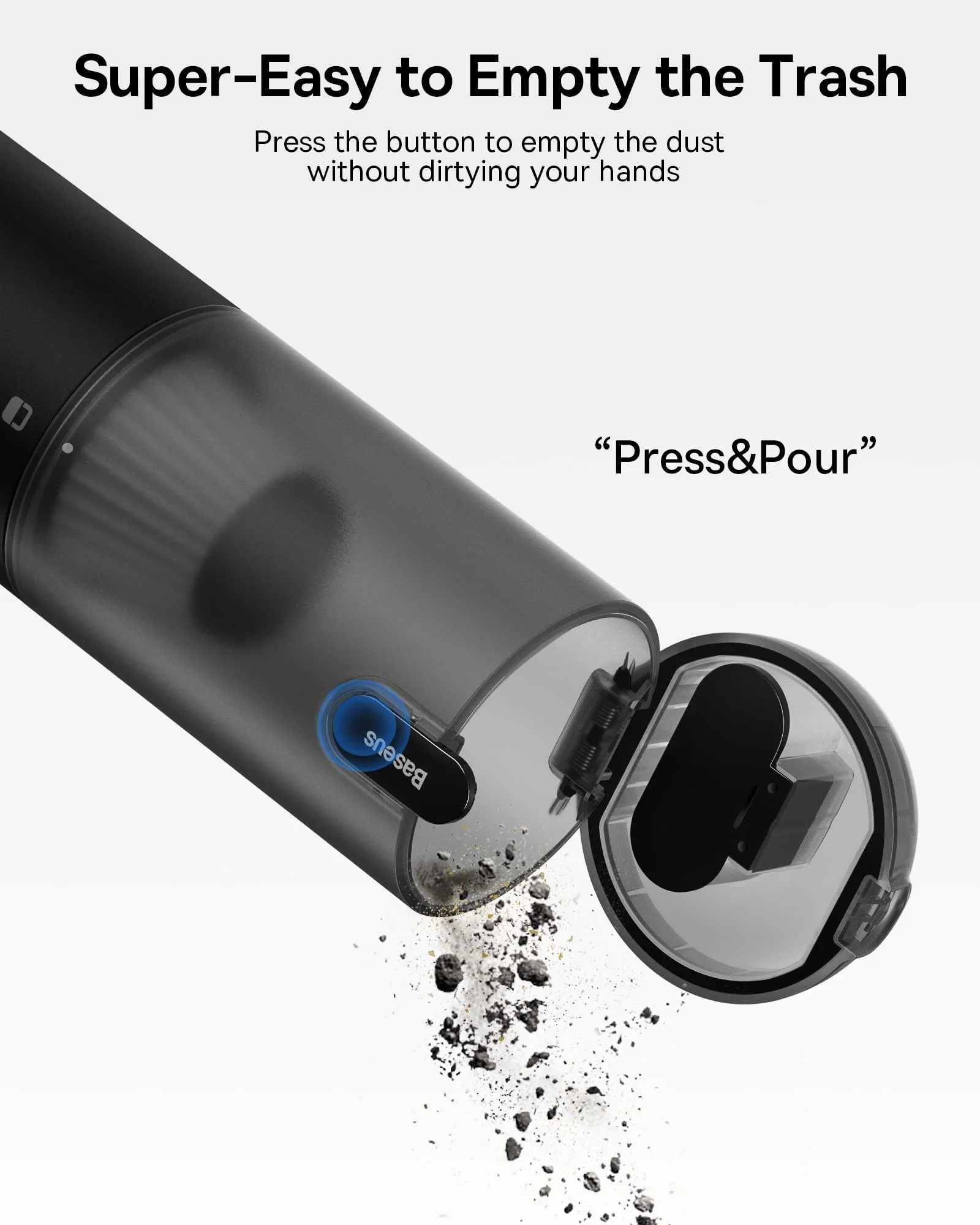 - CONVENIENT TRASH EMPTYING VACUUM CLEANER: With one click. the cap of the dust bin pops open automatically. so you won't dirty your hands when you empty the dust inside. thoughtful and highly convenient