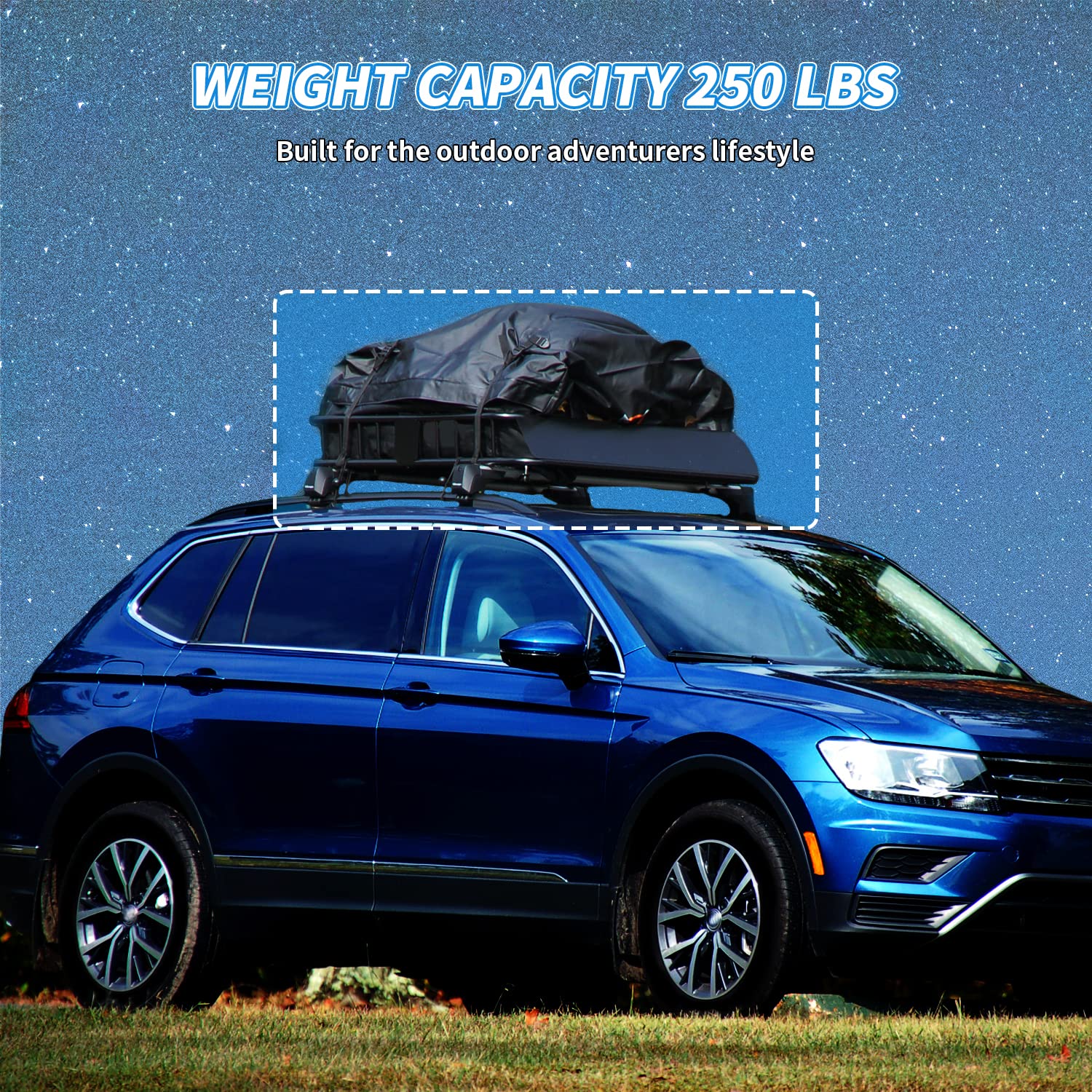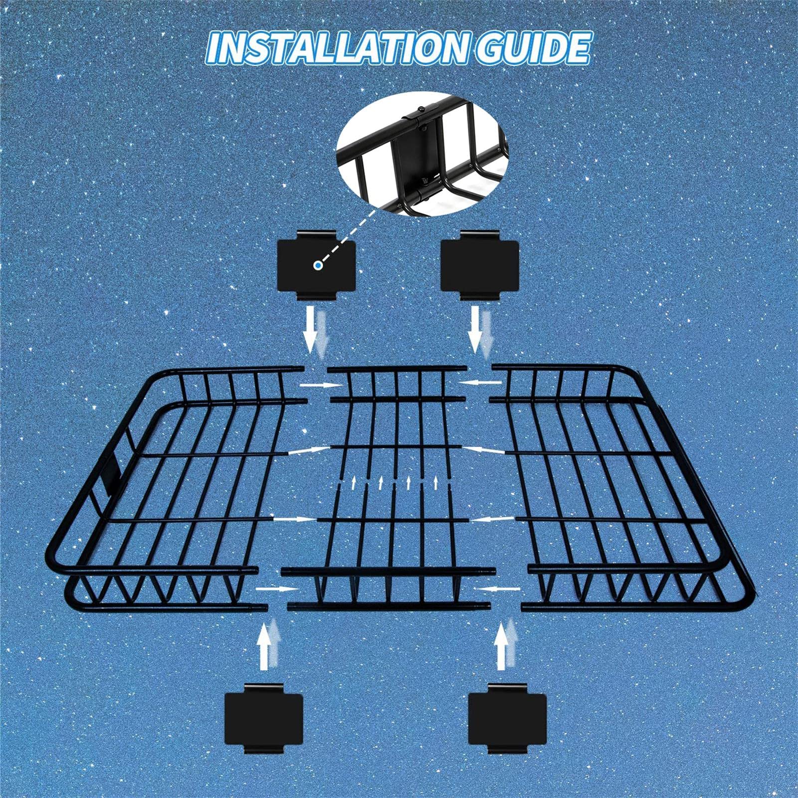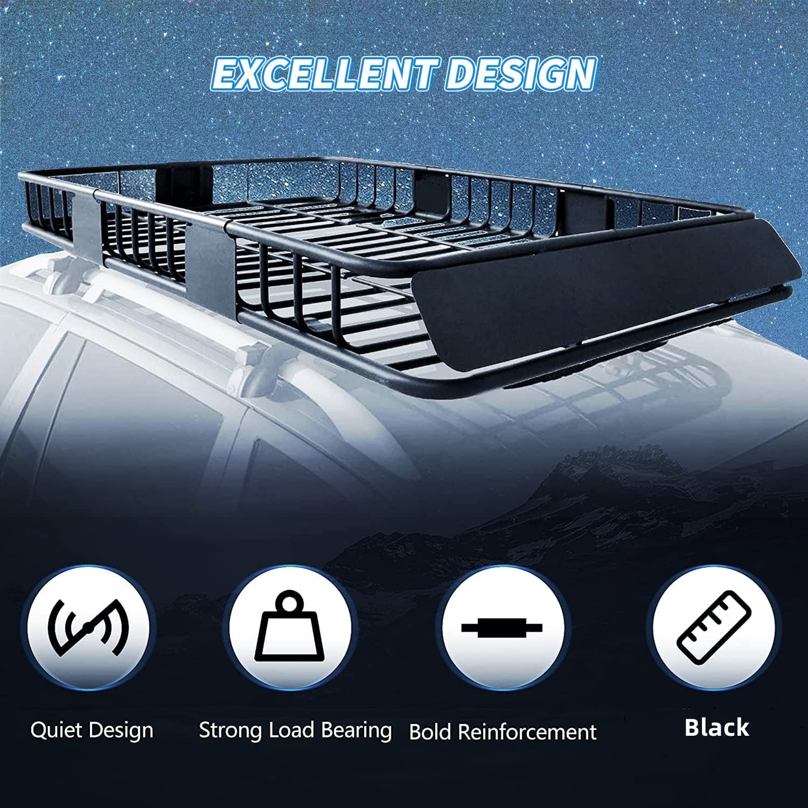 - Useful function: Use this roof rack to store hauling extra luggage. camping equipment. cargo bags and more. Built for the outdoor adventurers lifestyle. Easy to install with 4 universal U-bolts. The bottom metal bars and side rails provide plenty of tie down points. A steel wind fairing is also included. Carry big loads and mount accessories directly to the crossbars or straight bars of this roof rack cargo basket.