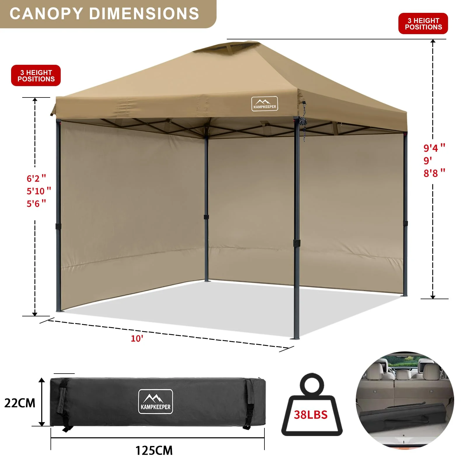 - ��10x10 FT LARGE CAPACITY��Our outdoor 10ft pop up canopy provides 100 square feet of shade for about 10-14 people. 3 adjustable heights up to 9ft from floor to roof.