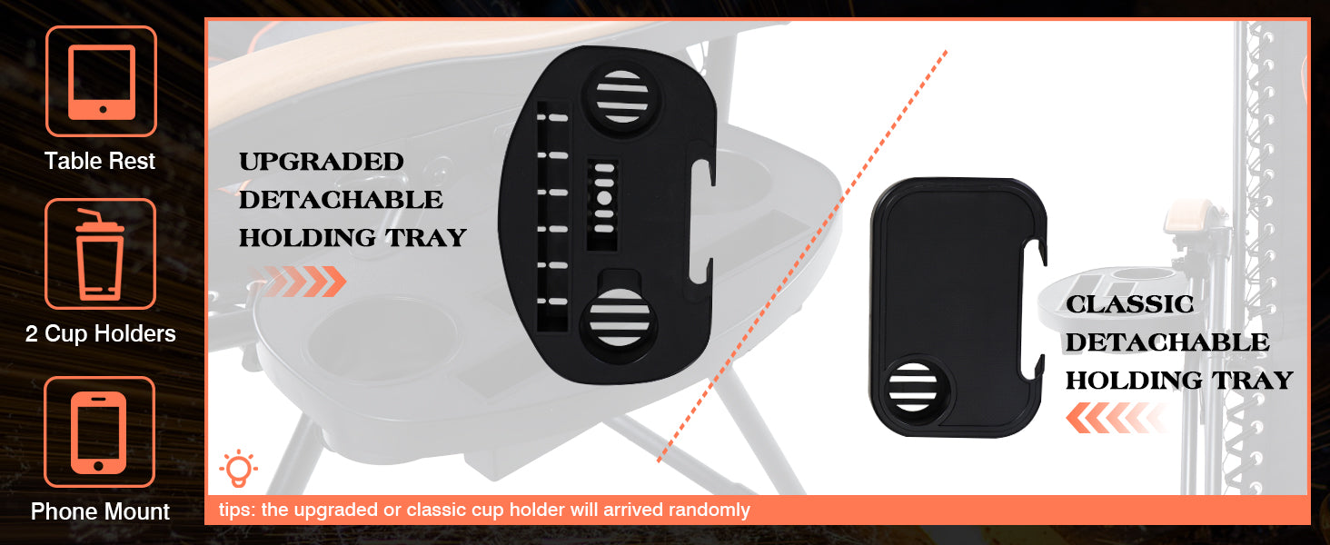 - Padded Seat & Back: Fully padded seat suspended by double bungee system provides more comfort and durability. Extra-large wood-like pattern armrest provide more comfort. Cup tray is included for holding drinks or food