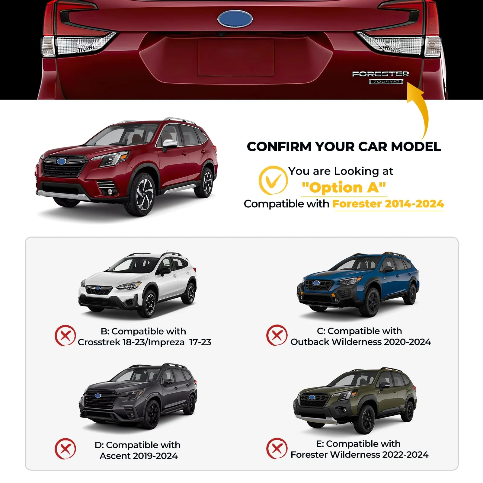 • ��Attention Before You Buy��We have 5 roof rack selections in this listing that may fit your vehicle. Please choose the one which is the perfect match. Now you are choosing the cross bars compatible with 2014-2024 Subaru Forester (with factory-raised side rails). You can choose the other selection compatible with the 2022-2024 Subaru Forester Wilderness / 2017-2023 Subaru Impreza / 2018-2023 Subaru Crosstrek / 2019-2024 Subaru Ascent / 2020-2024 Subaru Outback Wilderness. If you are not sure of the fitment. don't hesitate to get in touch with us for confirmation.